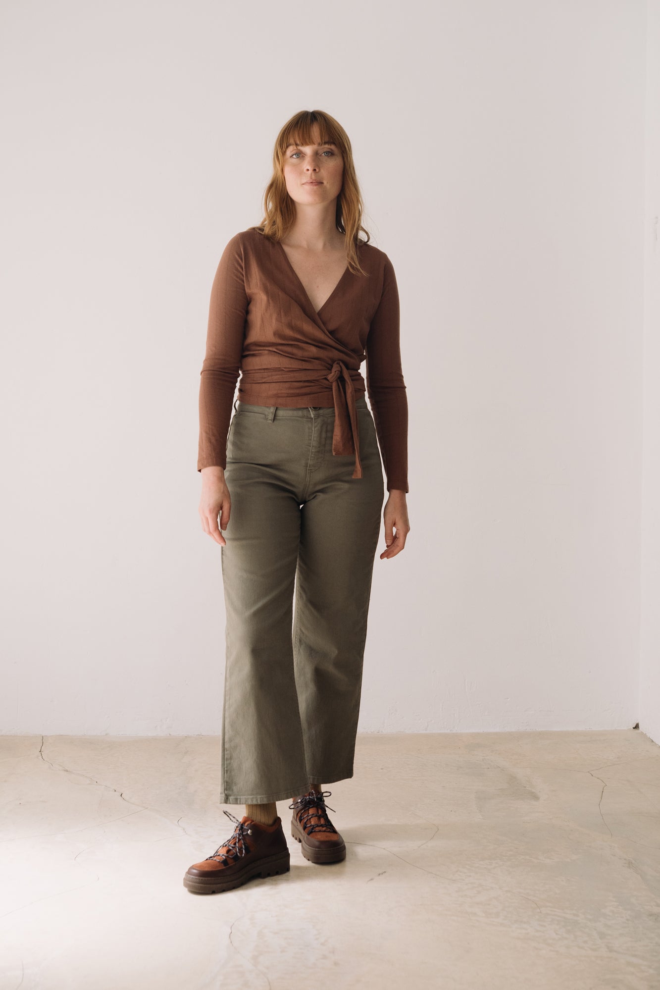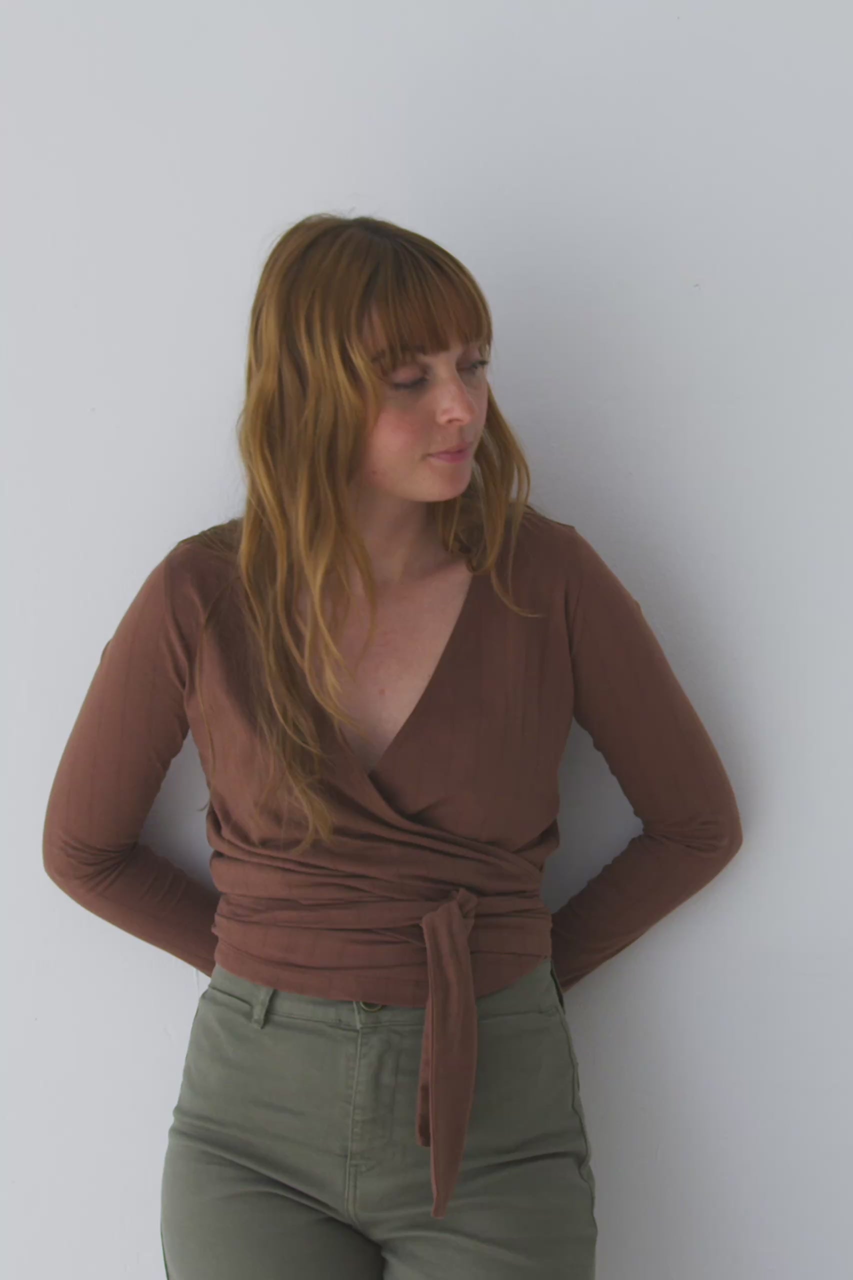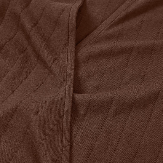 This Wrap Top in brown is a comfortable, feminine, and versatile piece designed to accompany you in your everyday life with style. A must-have essential for your sustainable wardrobe! Crafted from GOTS-certified organic cotton jersey, it features a soft, thick, and stretchy texture that adapts to your body without feeling tight. Its wrap design, with a V-neckline and tie at the waist, allows you to adjust the fit to your liking, naturally enhancing your silhouette. Brown evokes warmth, connection to the earth, and stability. A cozy and timeless shade that brings balance and depth to any look.