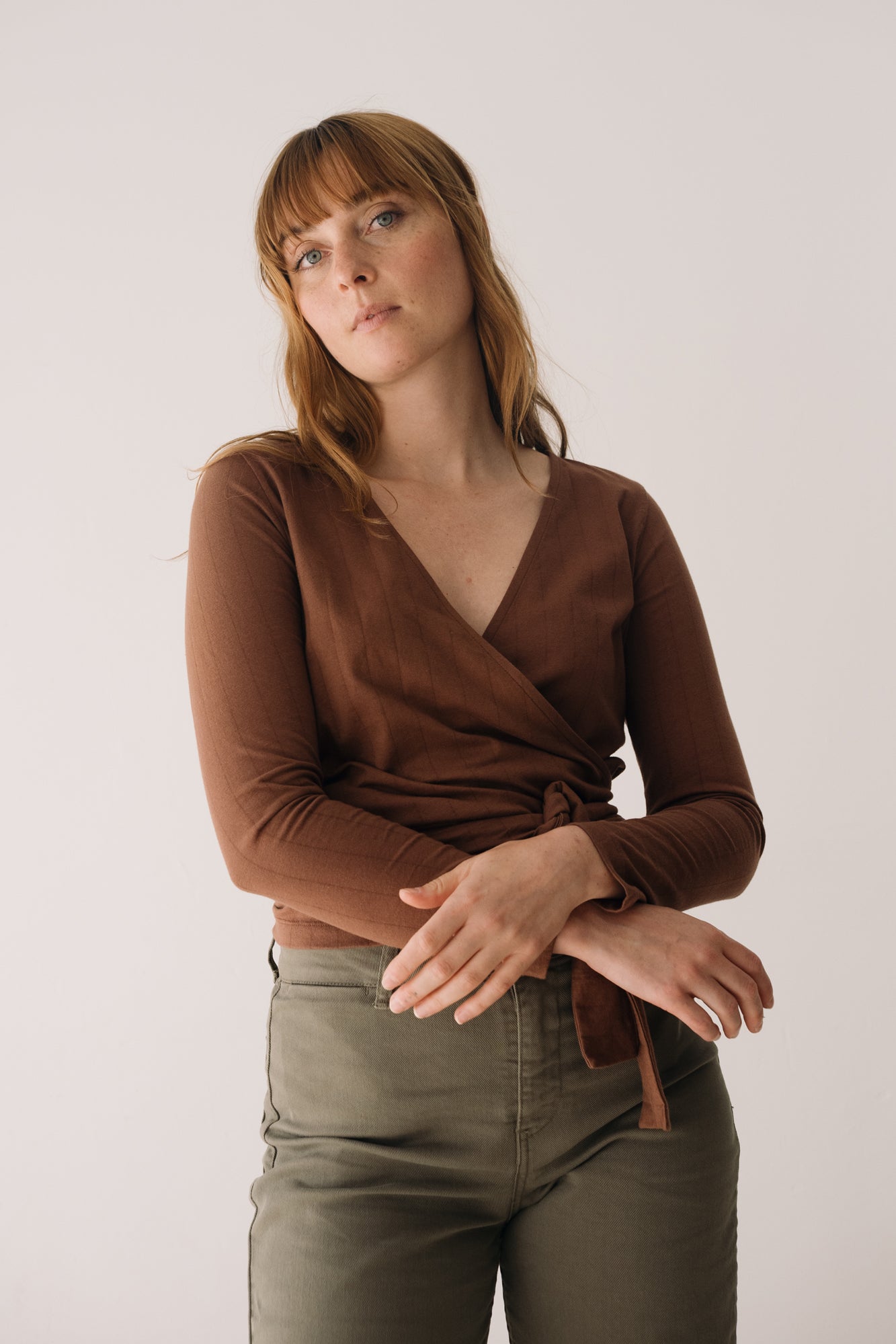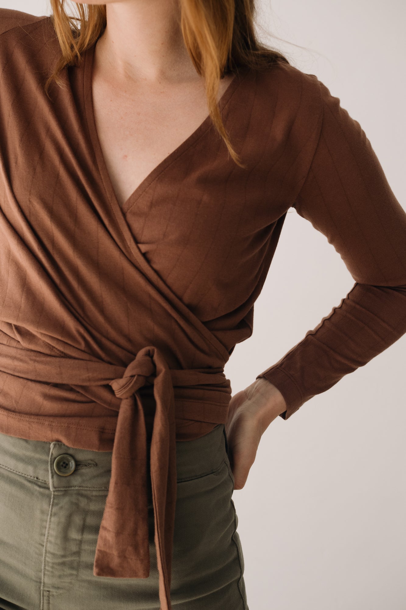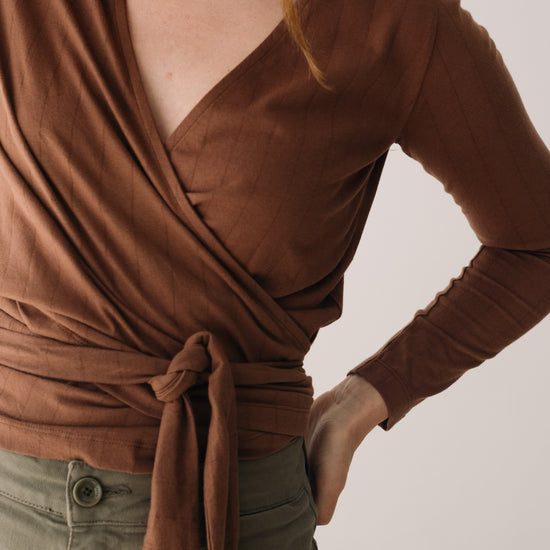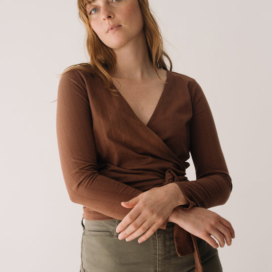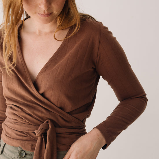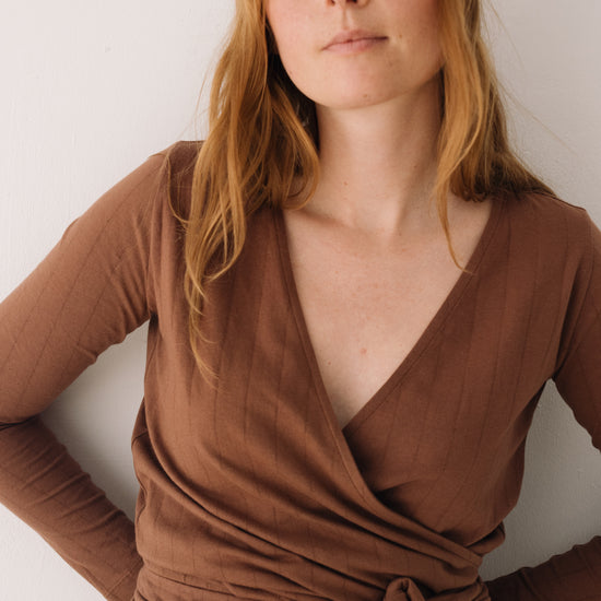 Organic jersey wrap top in Brown
