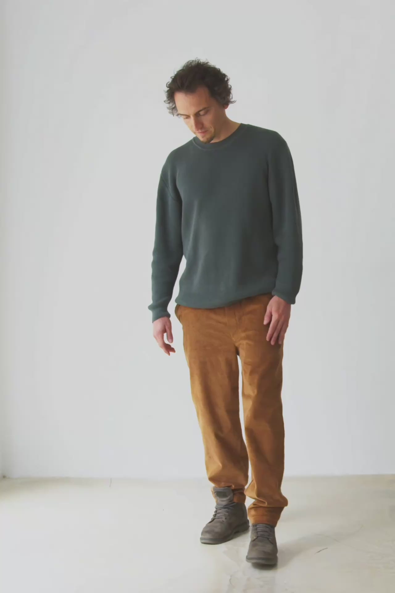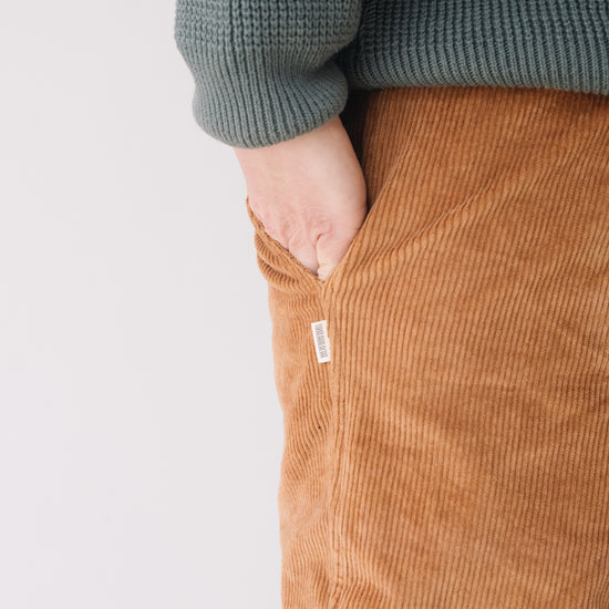 These Oversized Corduroy Pants are versatile and full of character—our true all-terrain trousers! Designed to accompany you through daily life, whether in the city or the mountains, thanks to their comfort, flexibility, and ultra-soft fabric that won’t go unnoticed. They feature an elastic waistband with an inner drawstring for a better fit, side pockets, and two back pockets. Designed with a loose, relaxed cut. Crafted from thick GOTS-certified organic cotton corduroy, a warm and durable fabric, they’re the perfect choice for the colder months. This terracotta shade conveys warmth, strength, and an earthy connection. A timeless and versatile color that adds depth and natural elegance to any outfit.