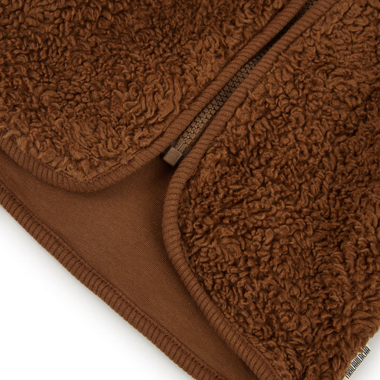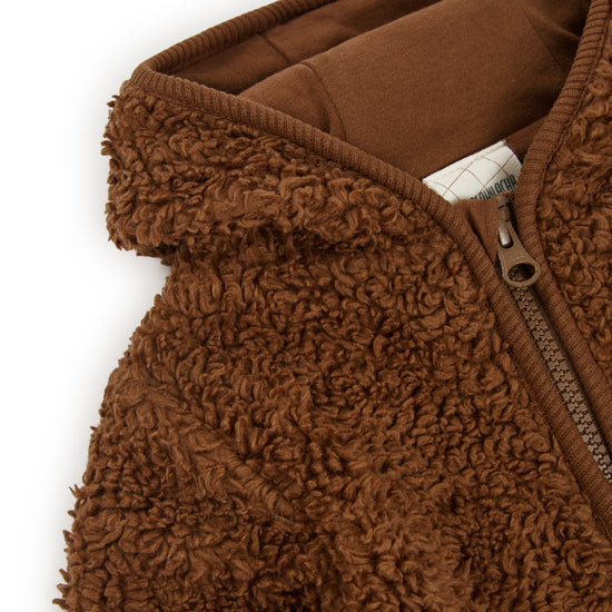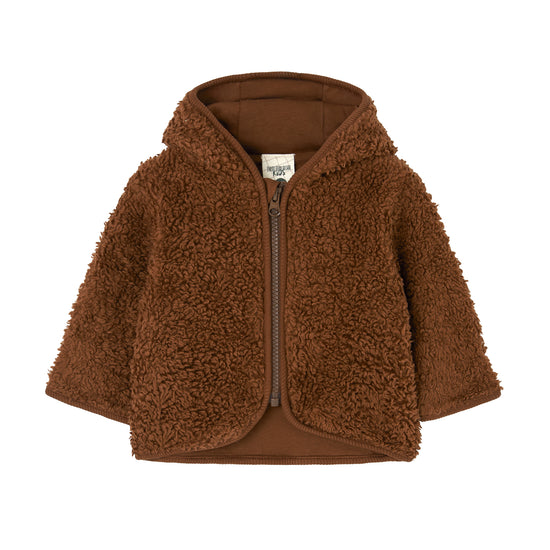 Our very first Baby Jacket in 100% GOTS-certified organic cotton sherpa—soft, warm, and toxin-free. Designed to gently wrap your baby in comfort while protecting their skin and the planet. Brown evokes warmth, connection to the earth, and stability. A cozy and timeless shade that brings balance and depth to any look.