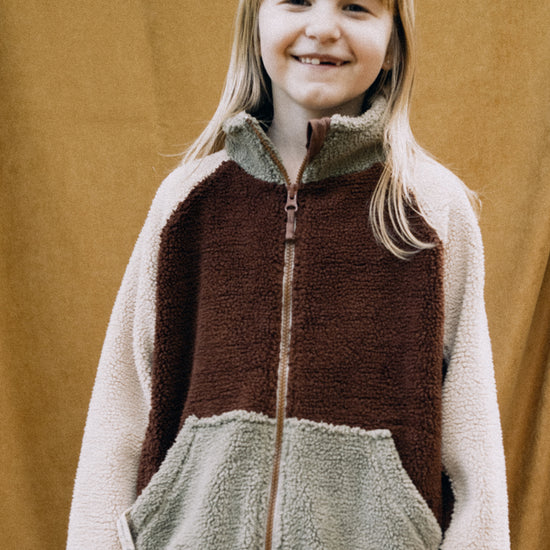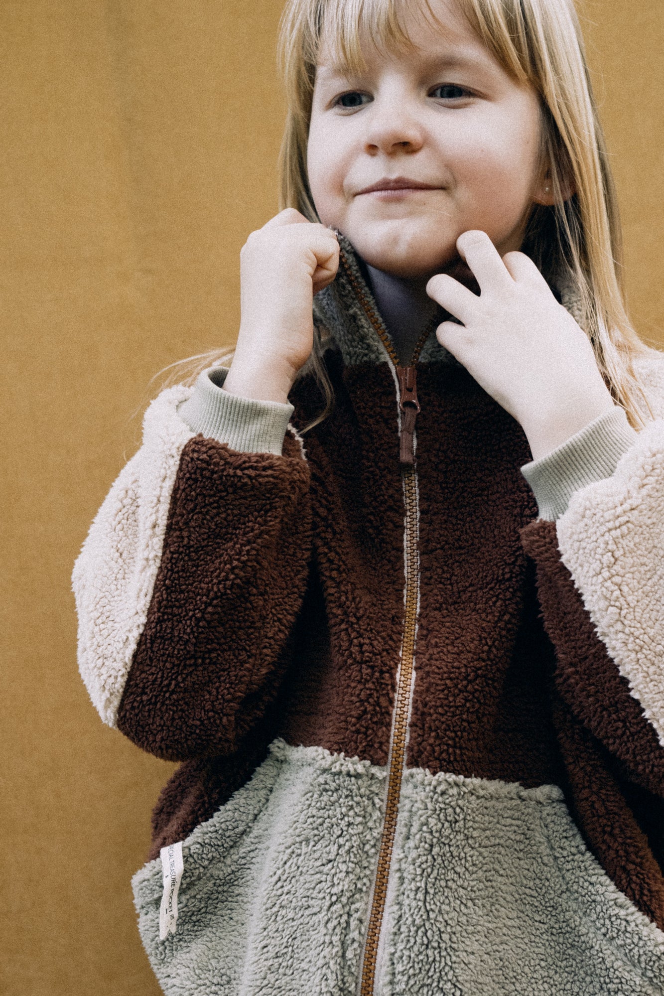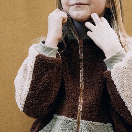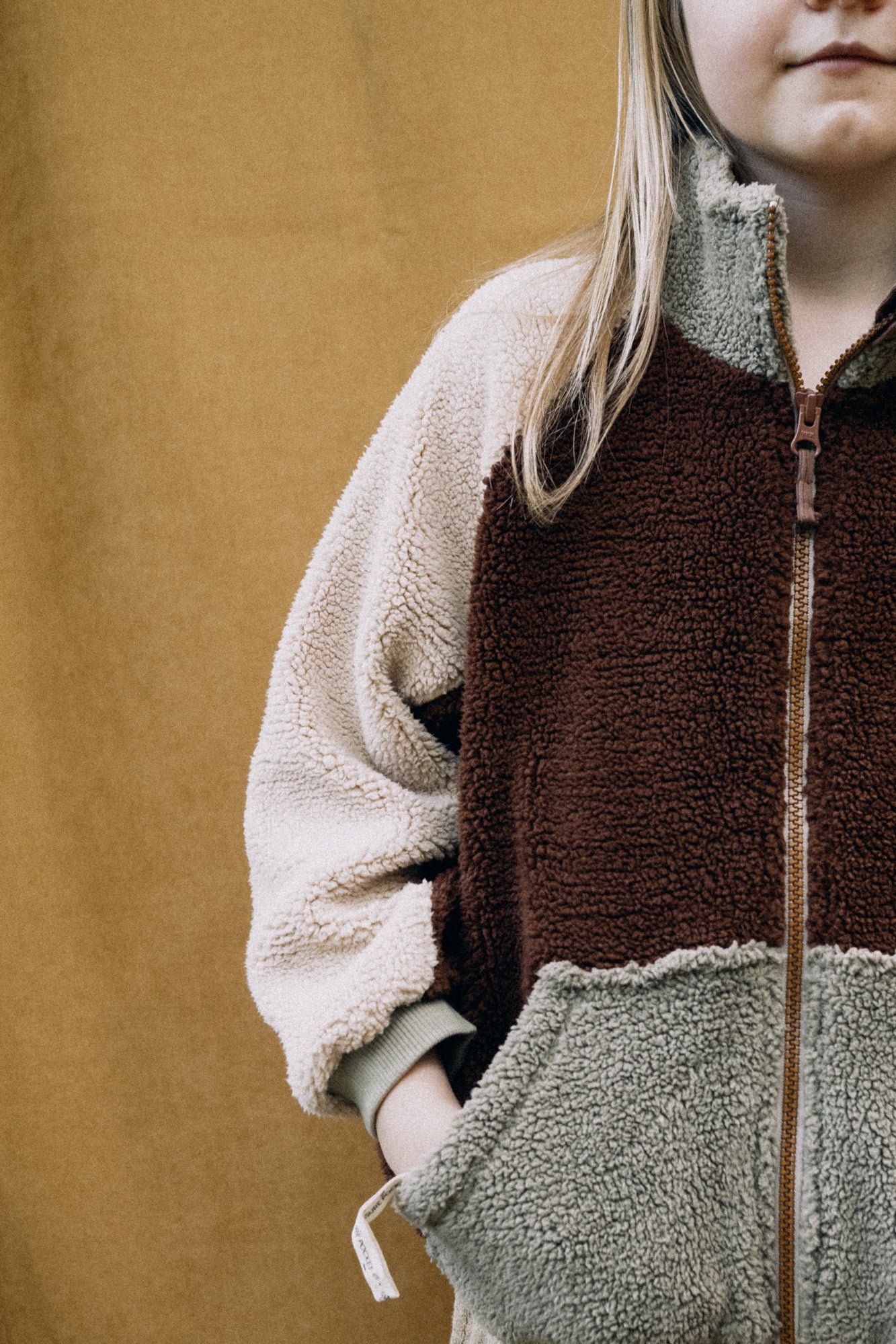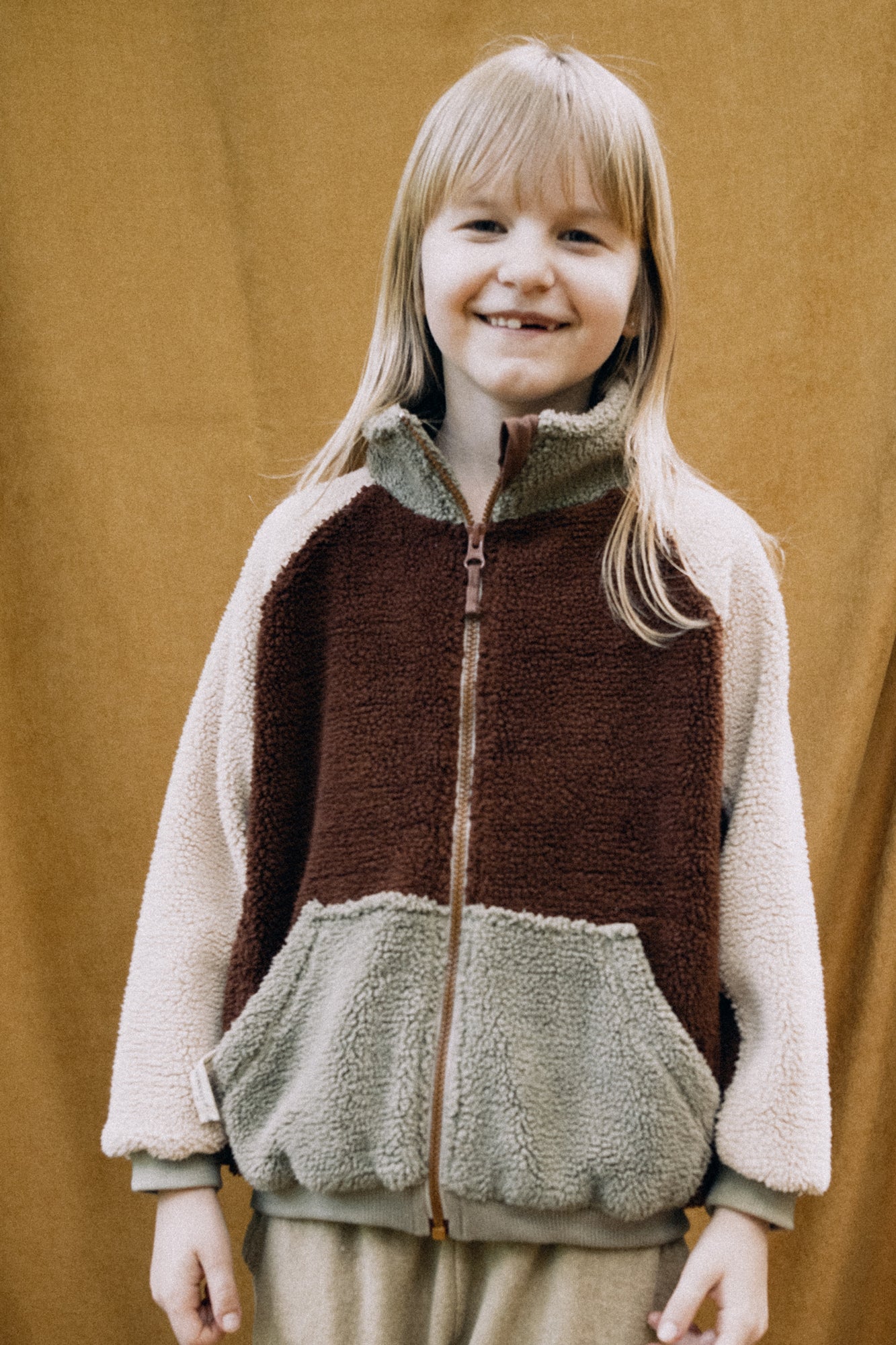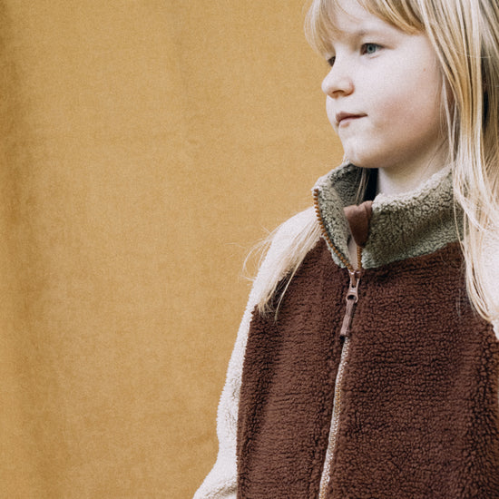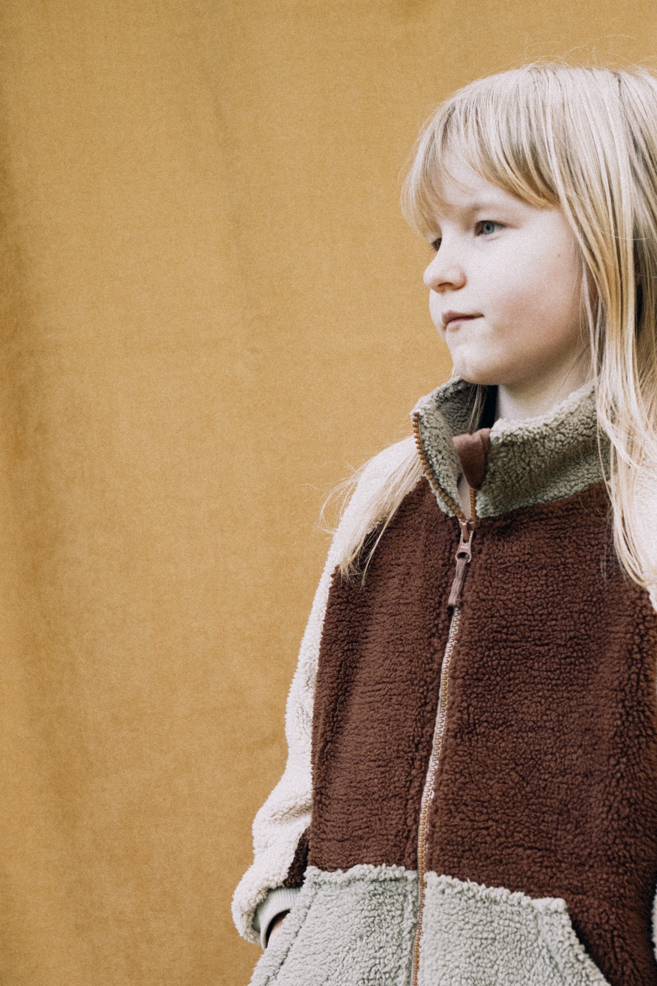 Our very first Sherpa Jacket made from 100% GOTS-certified organic cotton—completely free from synthetic or recycled fibers! Perfect for keeping little ones warm on the coldest days, it features a relaxed fit with raglan sleeves, a high collar, and soft ribbed cuffs and hem. Thick yet lightweight, this warm and cozy jacket is lined with soft jersey inside for extra comfort and ease of movement. All our garments are toxin-free and hypoallergenic, carefully crafted to protect and respect your little one's delicate skin.