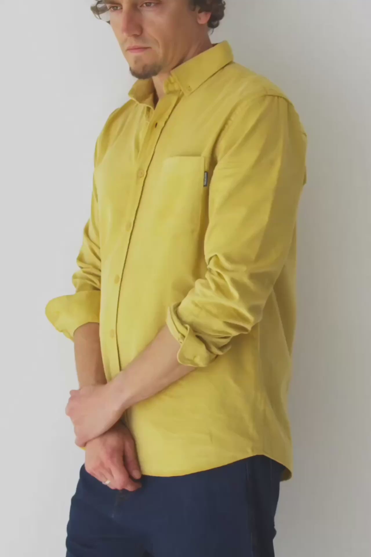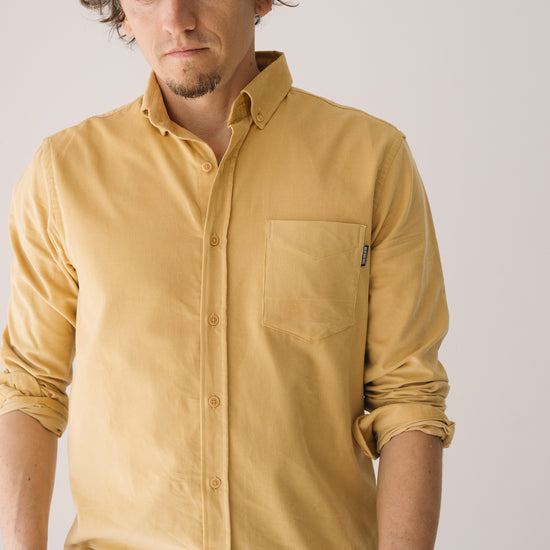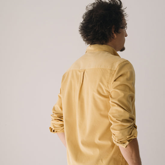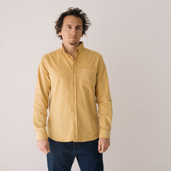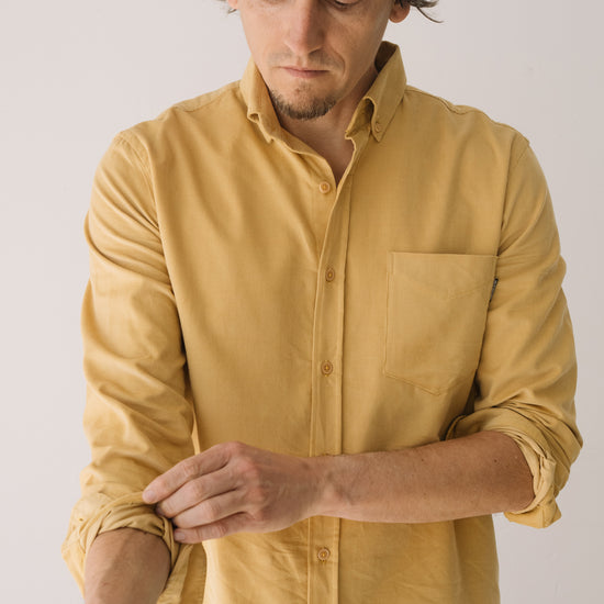 Our unisex Fine Wale Corduroy Shirt combines style, comfort, and sustainability. Made from 100% GOTS-certified organic cotton, it’s soft, warm, and perfect for transitional weather or cooler days. Designed with a timeless straight cut, button-down collar, and chest pocket, it’s versatile enough for both casual and formal looks. The shirt is finished with biodegradable corozo buttons, a biodegradable plant-based alternative. This pastel yellow shade conveys warmth and serene joy. A soft, luminous color that adds brightness to your wardrobe in a subtle and timeless way.