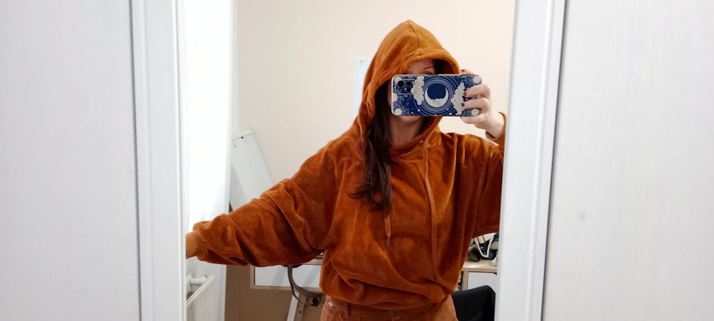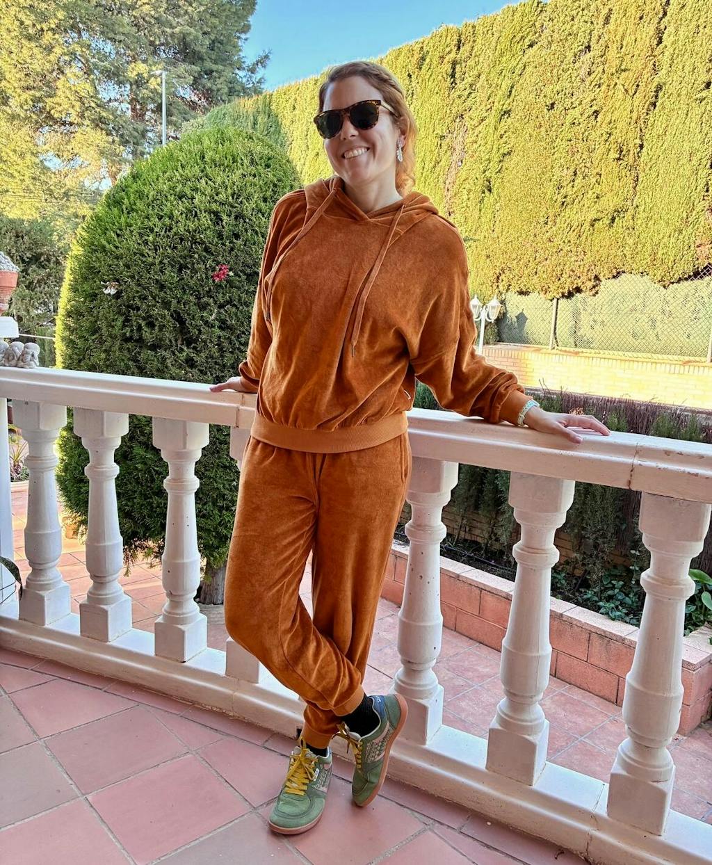 This Hoodie is a cozy sweatshirt full of personality. Perfect for those days when you’re looking for comfort—whether to relax, work out, or head out in style without compromising ease. This velour hoodie features a relaxed fit, dropped shoulders, and a roomy hood. Pair it with our Thais joggers for the perfect matching set! Respectful of your skin and the planet, it’s crafted from GOTS-certified organic cotton velour—a soft, warm, and slightly stretchy fabric that makes it ideal for the colder months. This terracotta shade conveys warmth, strength, and an earthy connection. A timeless and versatile color that adds depth and natural elegance to any outfit.