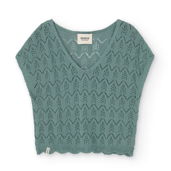 Openwork Light blue knitted top
