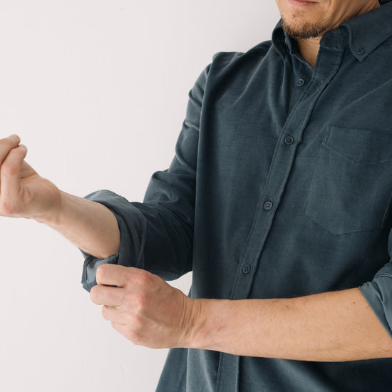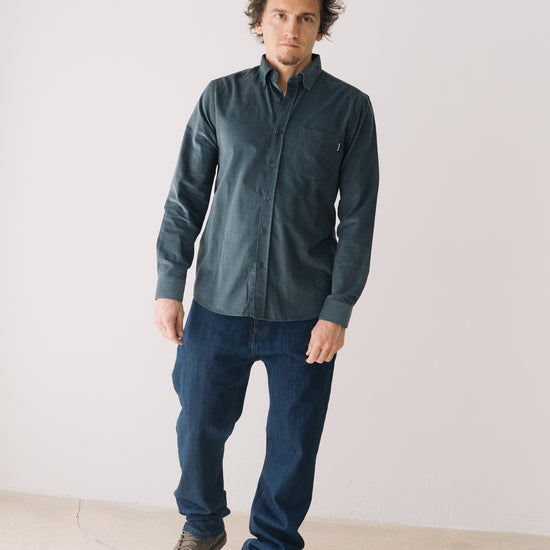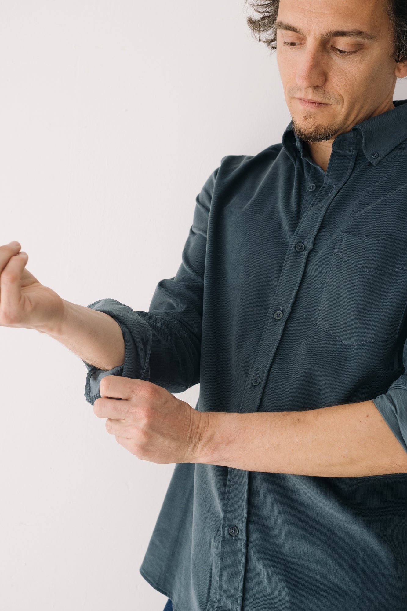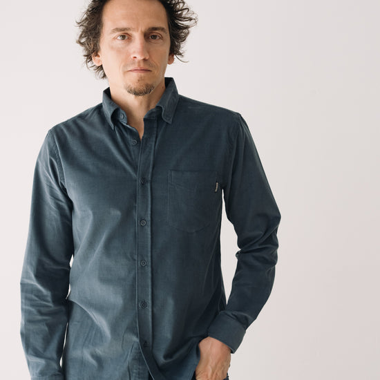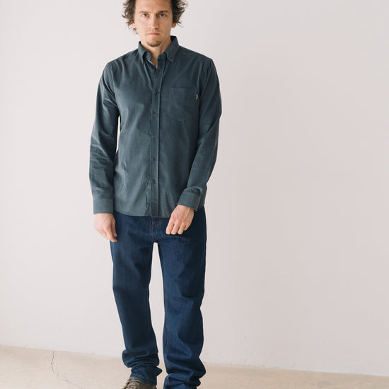 Our unisex Fine Wale Corduroy Shirt combines style, comfort, and sustainability. Made from 100% GOTS-certified organic cotton, it’s soft, warm, and perfect for transitional weather or cooler days. Designed with a timeless straight cut, button-down collar, and chest pocket, it’s versatile enough for both casual and formal looks. The shirt is finished with biodegradable corozo buttons, a biodegradable plant-based alternative. The fir blue shade evokes serenity, strength, and a deep connection with nature—a timeless color that adds elegance and balance to any look.