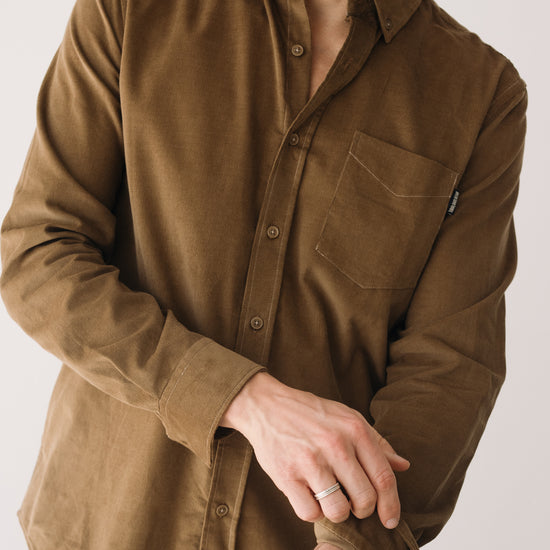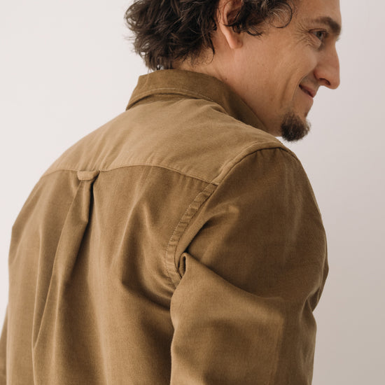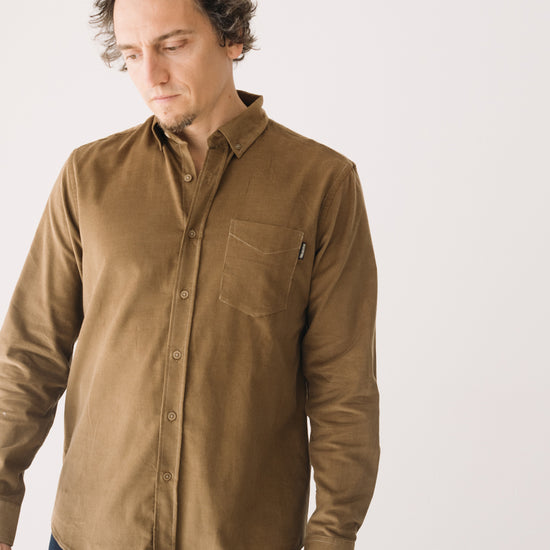 Our unisex Fine Wale Corduroy Shirt combines style, comfort, and sustainability. Made from 100% GOTS-certified organic cotton, it’s soft, warm, and perfect for transitional weather or cooler days. Designed with a timeless straight cut, button-down collar, and chest pocket, it’s versatile enough for both casual and formal looks. The shirt is finished with biodegradable corozo buttons, a biodegradable plant-based alternative. This light brown shade evokes warmth, connection to the earth, and stability. A cozy and timeless shade that brings balance and depth to any look.