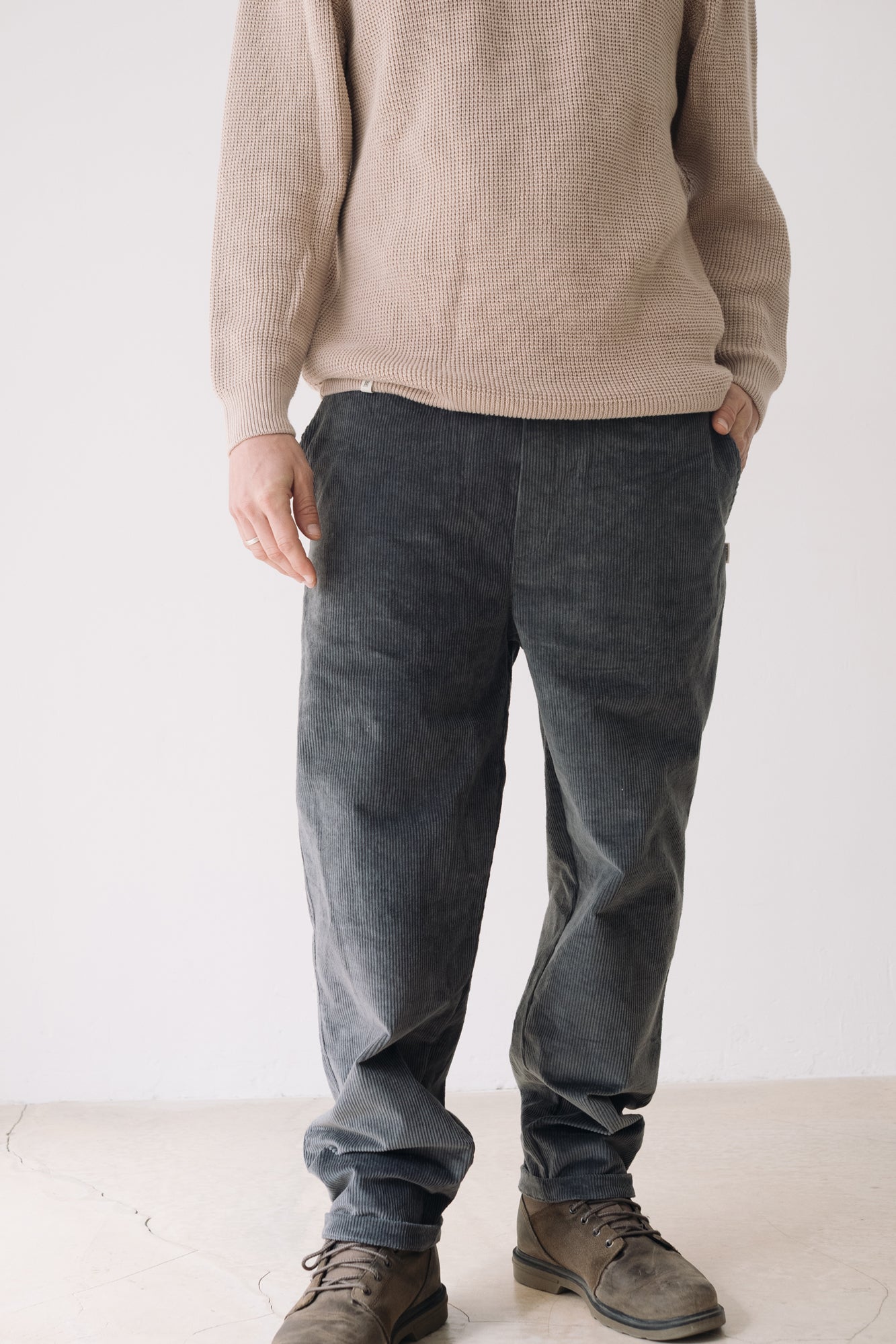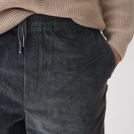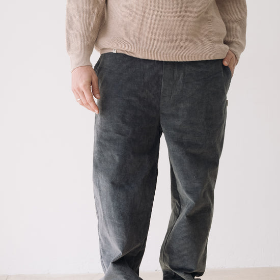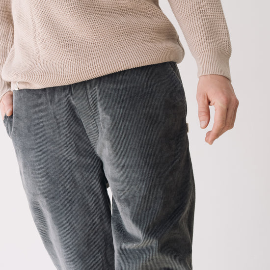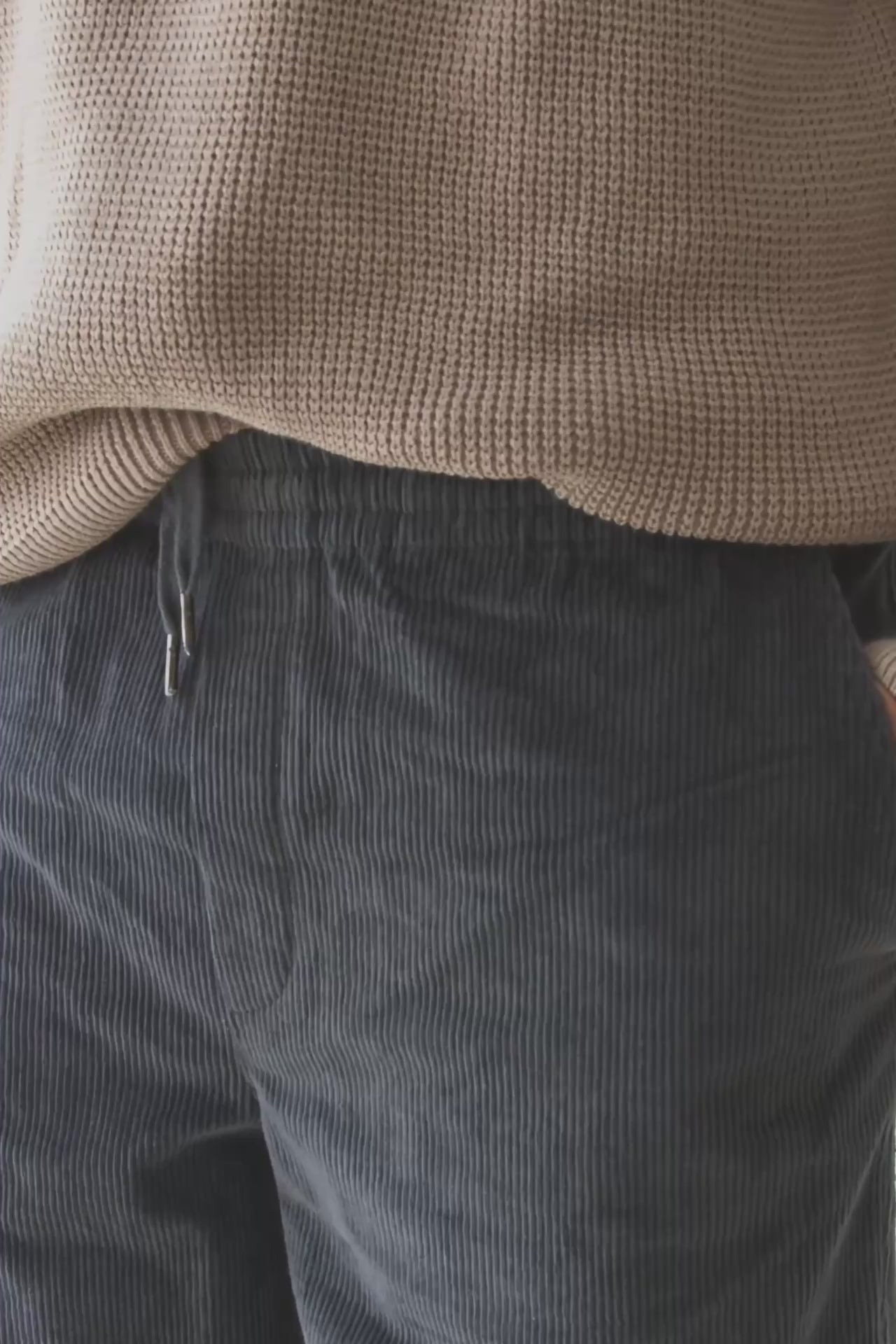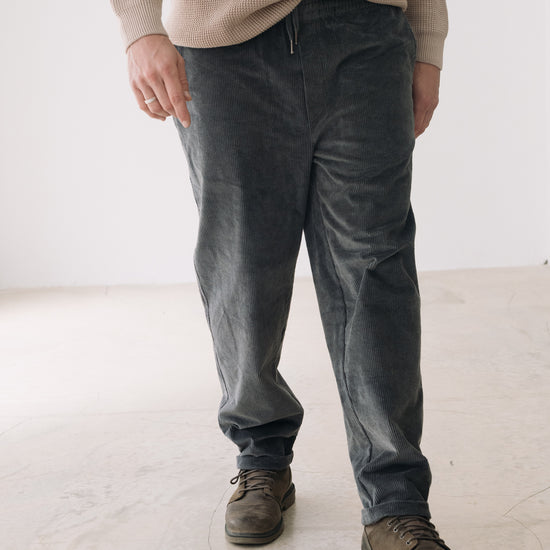 These Oversized Corduroy Pants are versatile and full of character—our true all-terrain trousers! Designed to accompany you through daily life, whether in the city or the mountains, thanks to their comfort, flexibility, and ultra-soft fabric that won’t go unnoticed. They feature an elastic waistband with an inner drawstring for a better fit, side pockets, and two back pockets. Designed with a loose, relaxed cut. Crafted from thick GOTS-certified organic cotton corduroy, a warm and durable fabric, they’re the perfect choice for the colder months. This blue shade conveys serenity and understated elegance. A versatile and flattering color for all skin tones, especially lighter complexions.