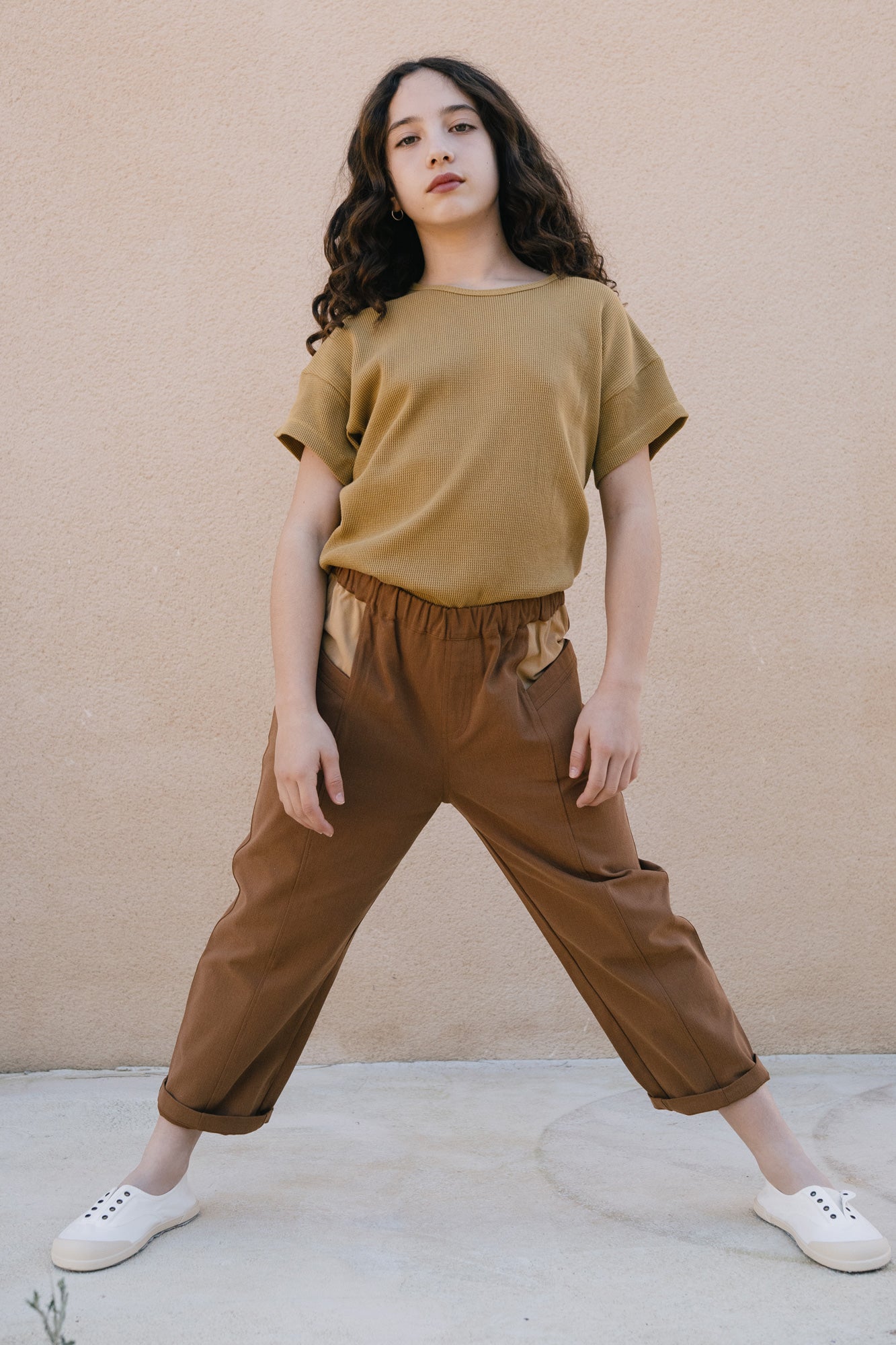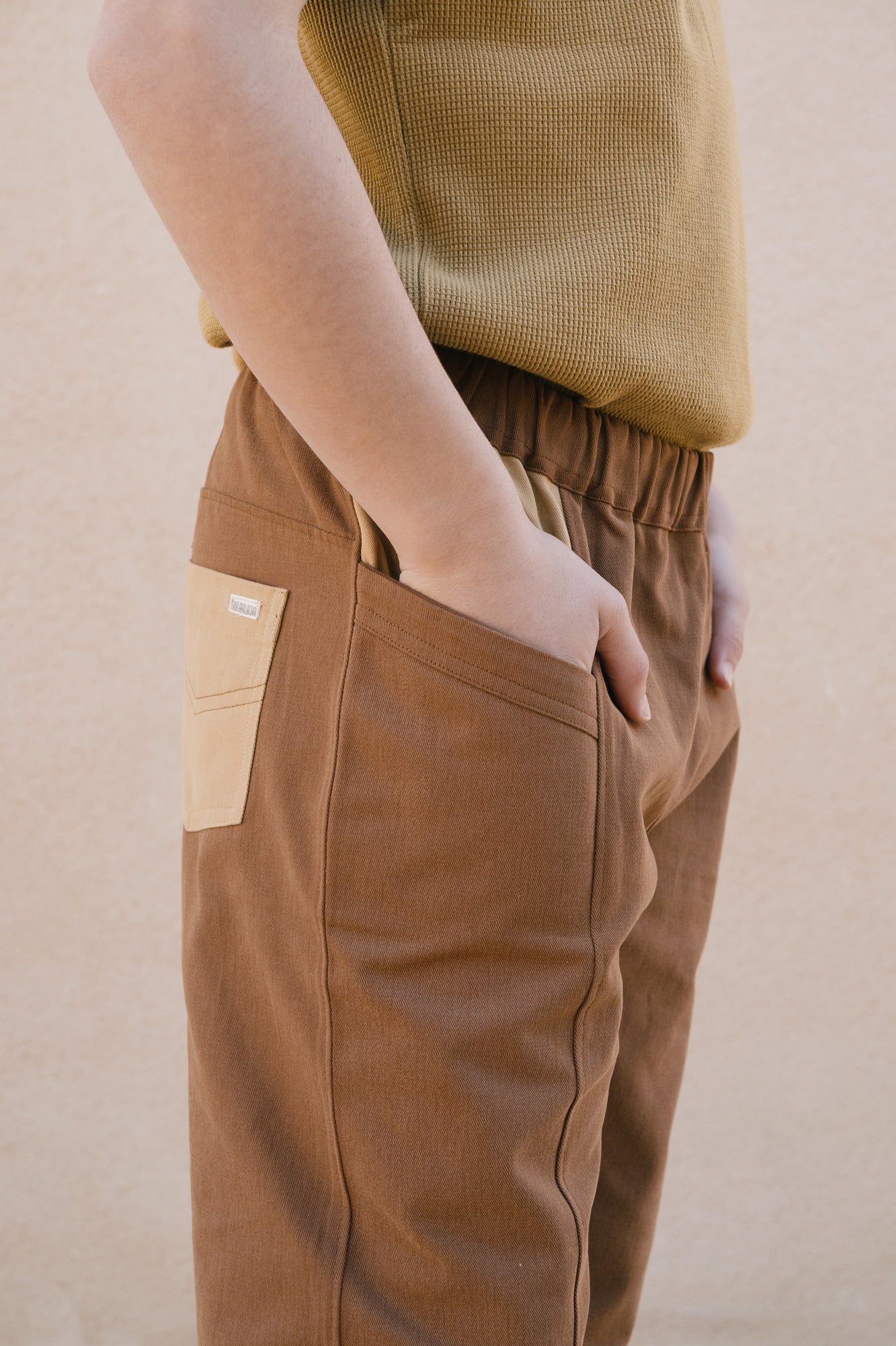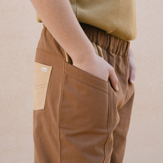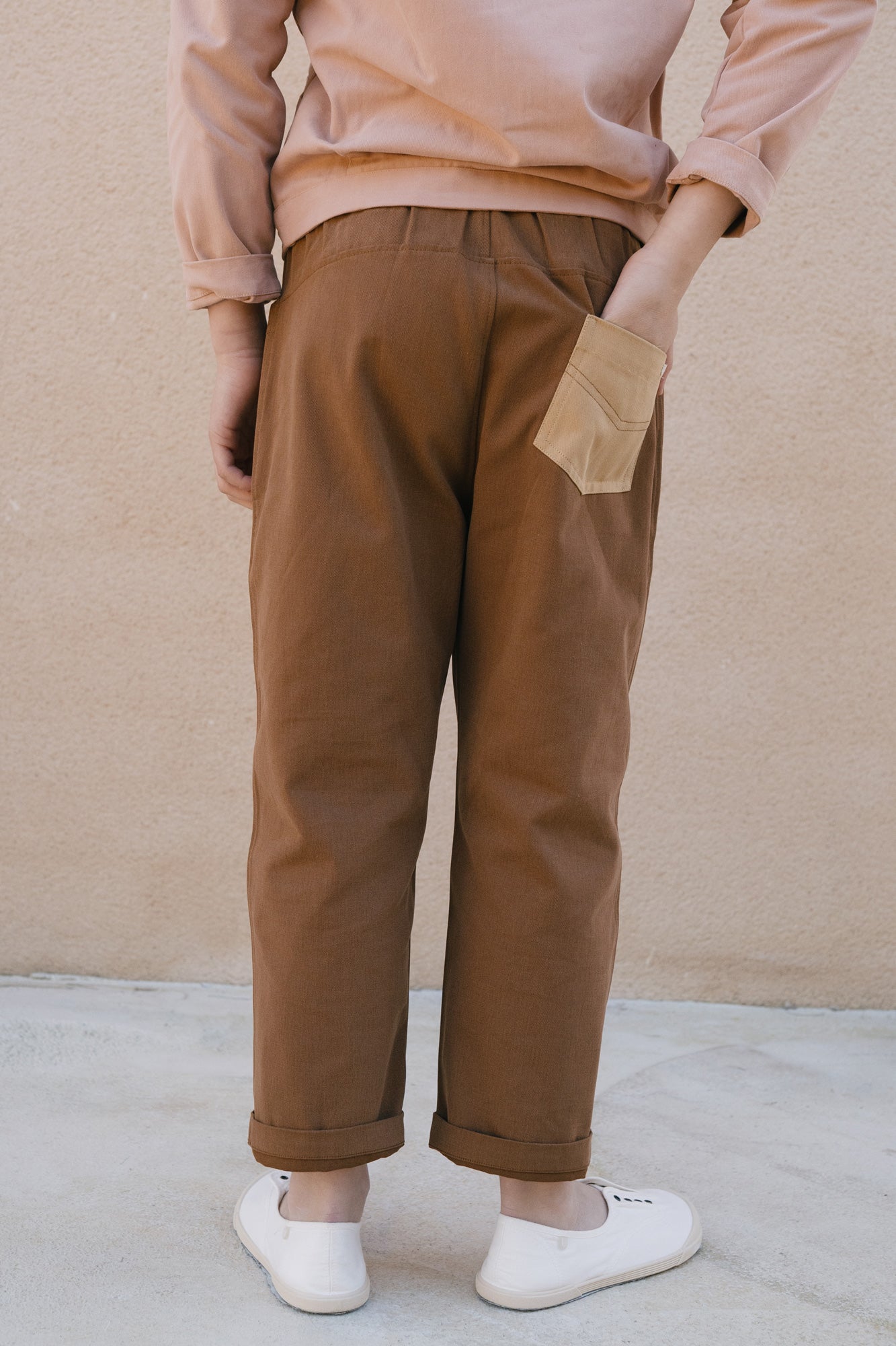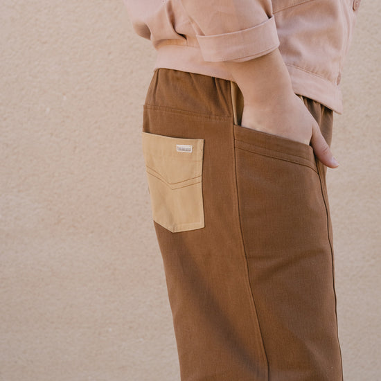 Crafted from durable organic cotton twill with a soft, pleasant feel, the Auca trousers are made for everyday wear. Their relaxed fit and elasticated waistband ensure comfort and freedom of movement throughout every game and activity. Side pockets and a back pocket provide space for little treasures and daily discoveries. For extended wear and a more relaxed silhouette, we recommend choosing one size up and turning up the hem. Brown evokes warmth, connection to the earth, and stability. A cozy and timeless shade that brings balance and depth to any look.