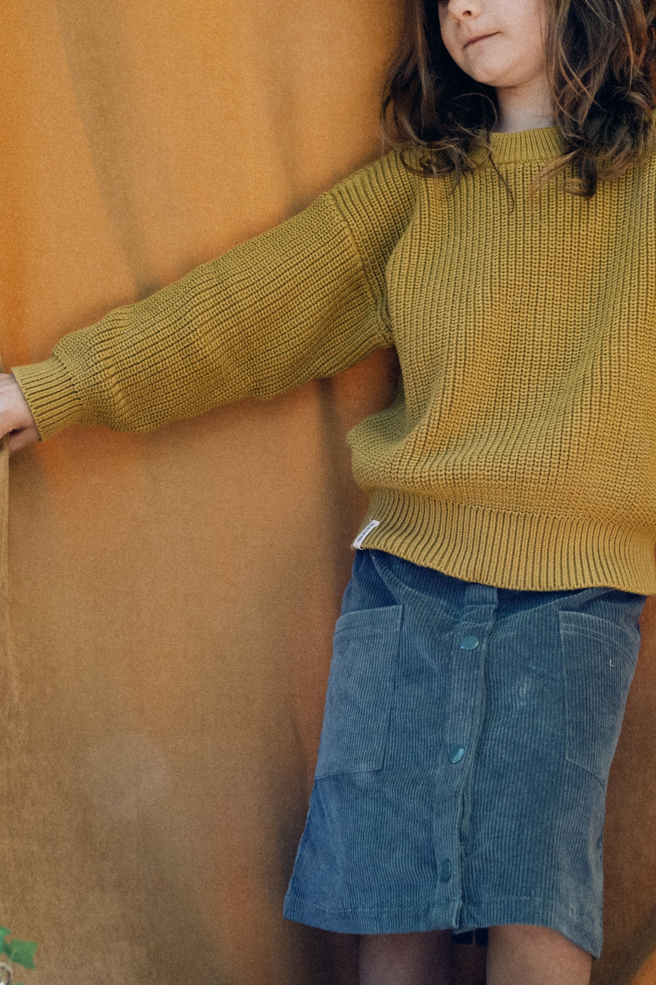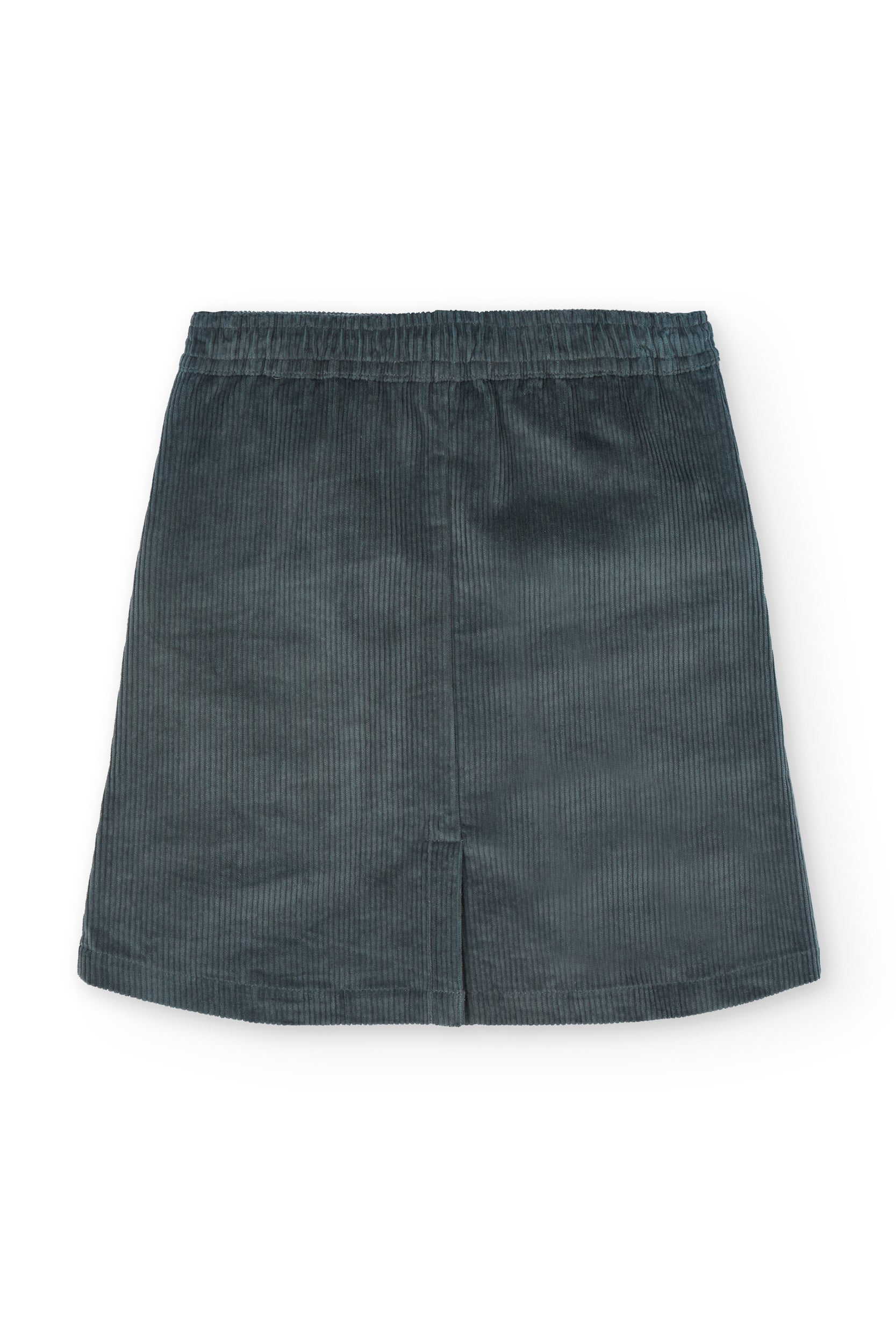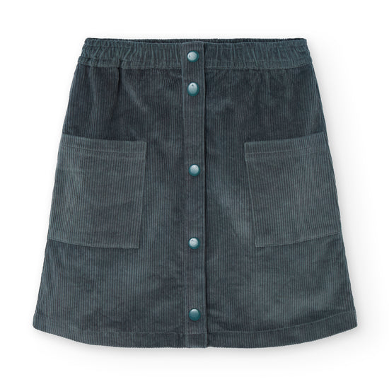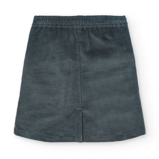This corduroy skirt will be your little one’s best ally in winter. With a slightly flared cut, an elastic waistband for extra comfort, and nickel-free snap buttons that are easy to open and close—encouraging independence. Designed to last, it’s warm, soft, and resistant thanks to its GOTS-certified organic cotton corduroy fabric. All our garments are toxin-free and hypoallergenic, carefully crafted to protect and respect your little one's delicate skin. This blue shade evokes serenity and a deep connection with nature—a timeless color that adds elegance and balance to any look.