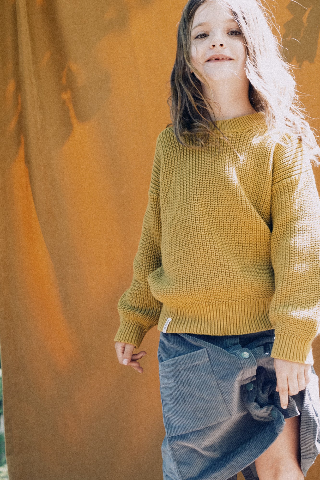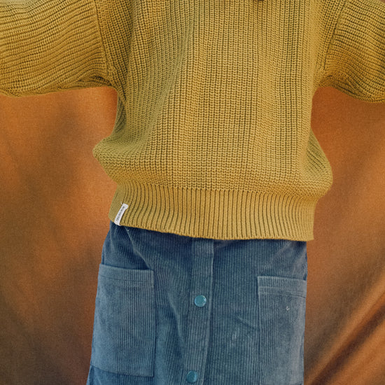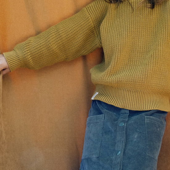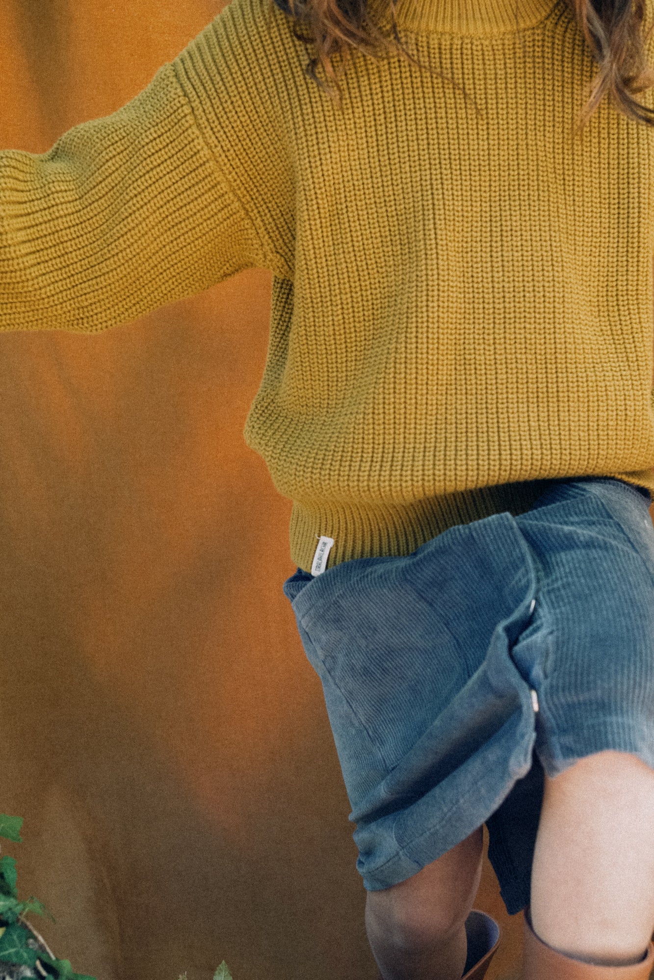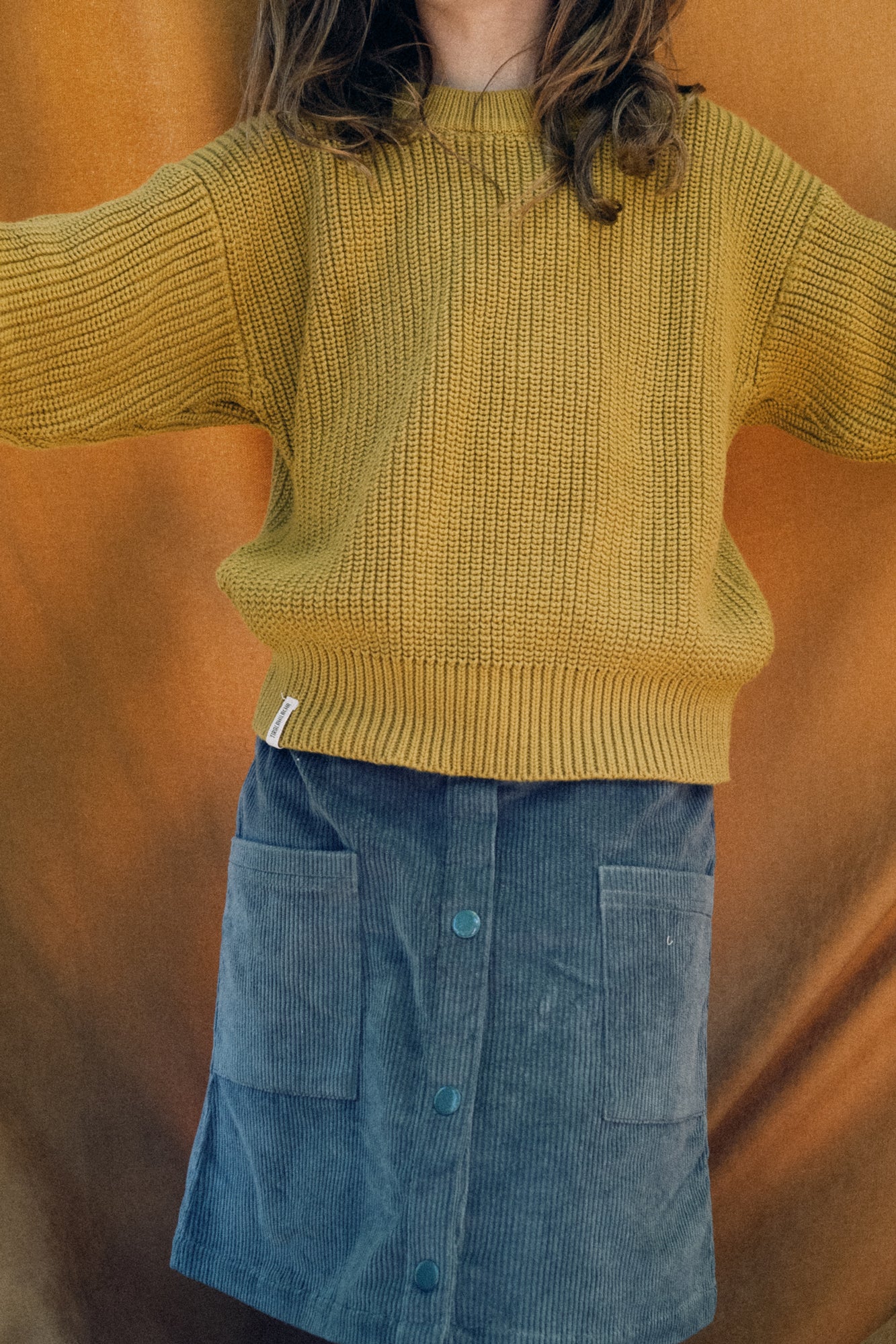This corduroy skirt will be your little one’s best ally in winter. With a slightly flared cut, an elastic waistband for extra comfort, and nickel-free snap buttons that are easy to open and close—encouraging independence. Designed to last, it’s warm, soft, and resistant thanks to its GOTS-certified organic cotton corduroy fabric. All our garments are toxin-free and hypoallergenic, carefully crafted to protect and respect your little one's delicate skin. This blue shade evokes serenity and a deep connection with nature—a timeless color that adds elegance and balance to any look.