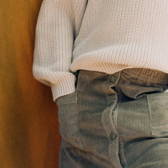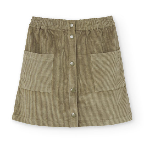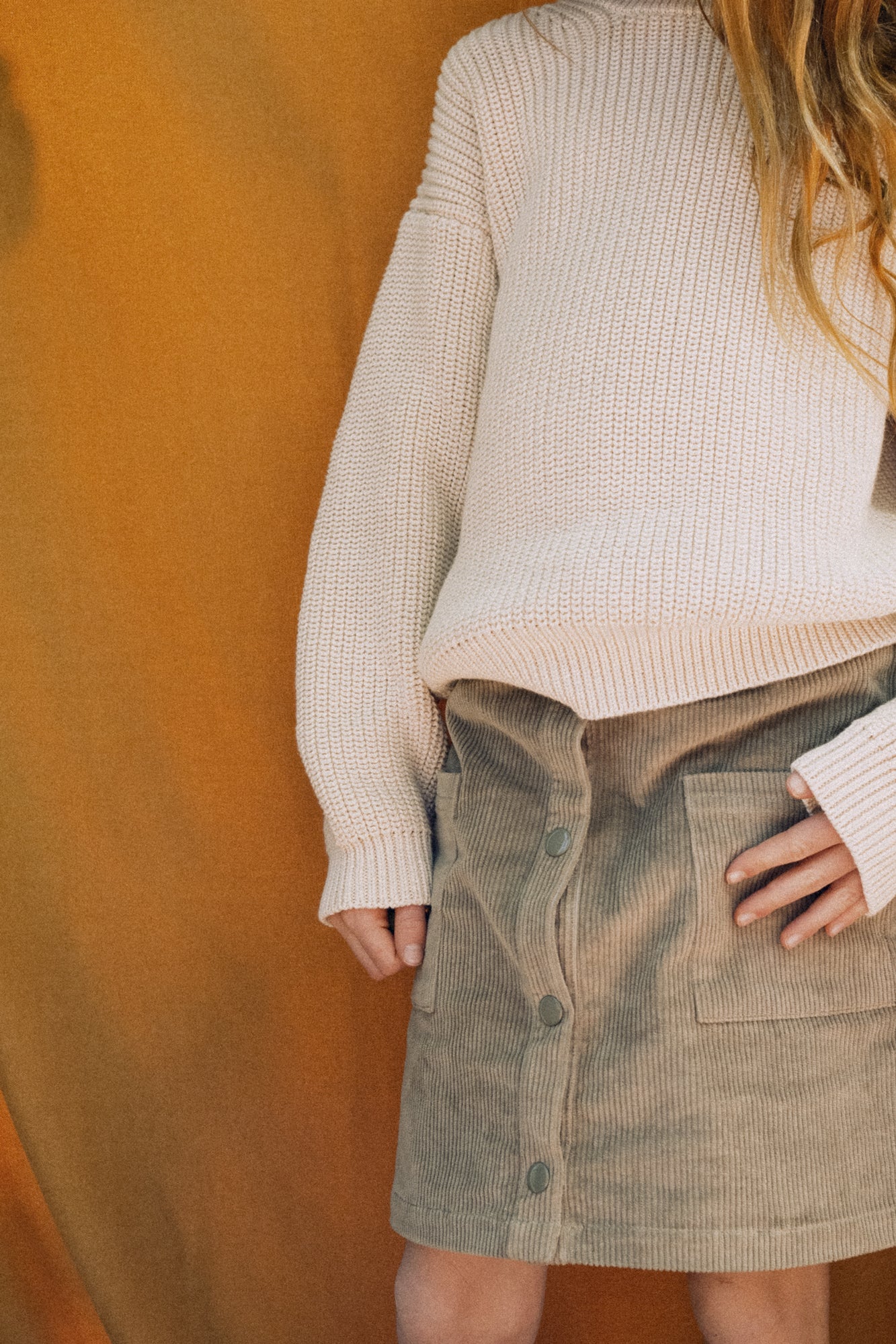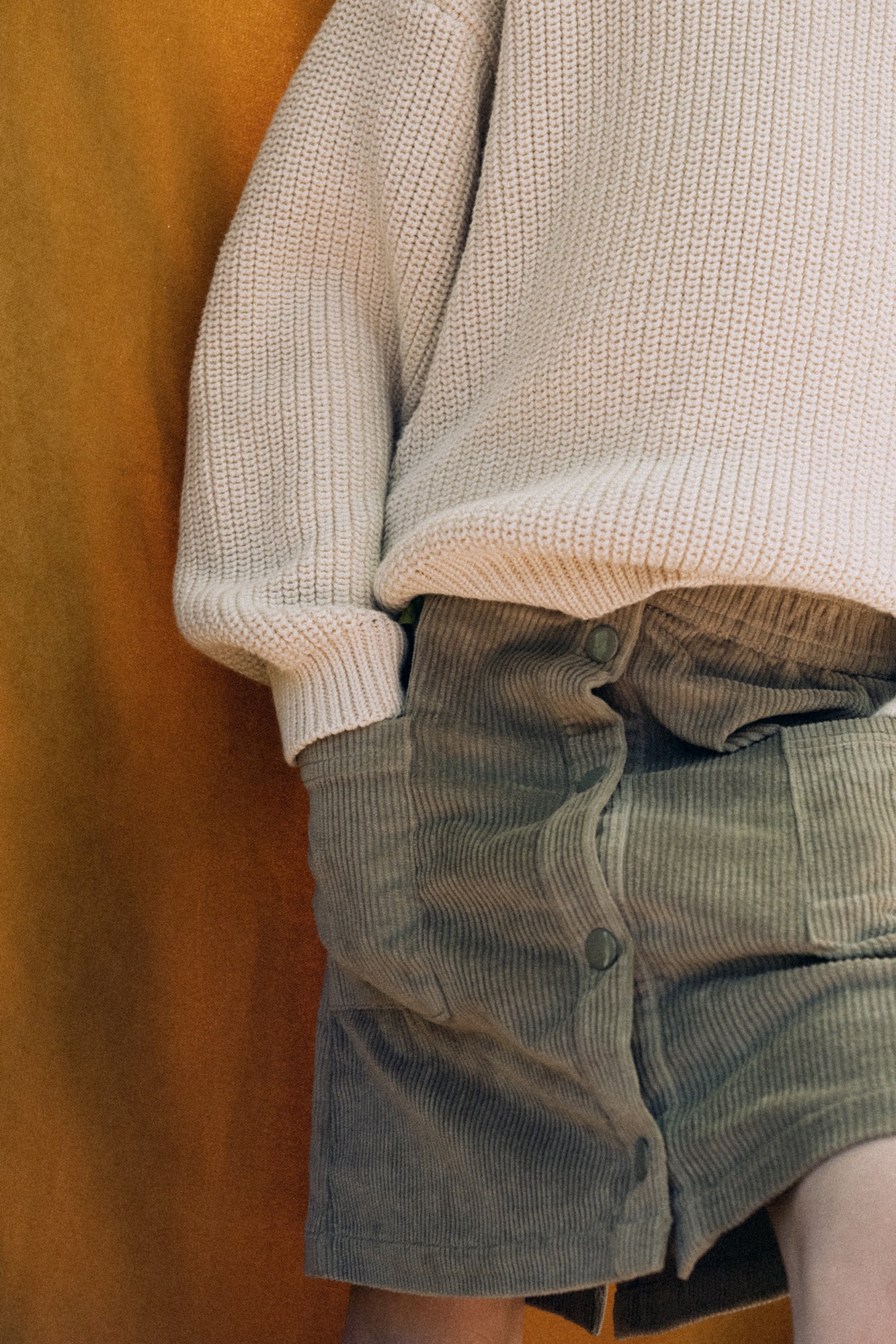 This corduroy skirt will be your little one’s best ally in winter. With a slightly flared cut, an elastic waistband for extra comfort, and nickel-free snap buttons that are easy to open and close—encouraging independence. Designed to last, it’s warm, soft, and resistant thanks to its GOTS-certified organic cotton corduroy fabric. All our garments are toxin-free and hypoallergenic, carefully crafted to protect and respect your little one's delicate skin. This grass green shade evokes serenity and peace, while also conveying stability and a deep connection to the natural world.