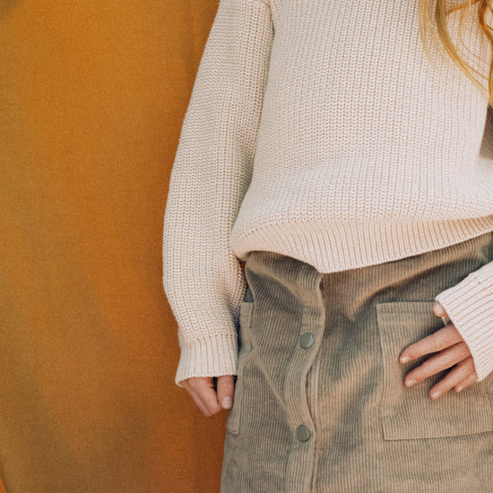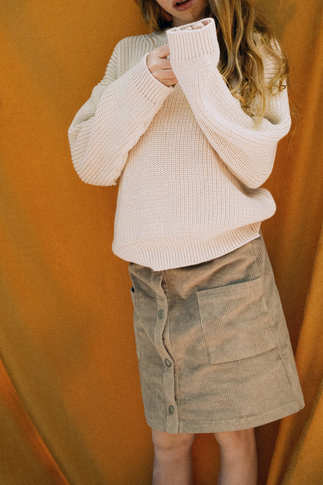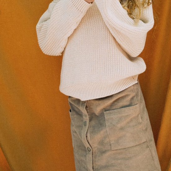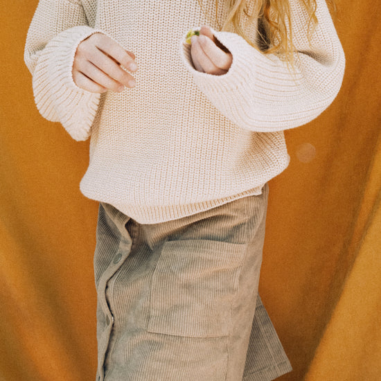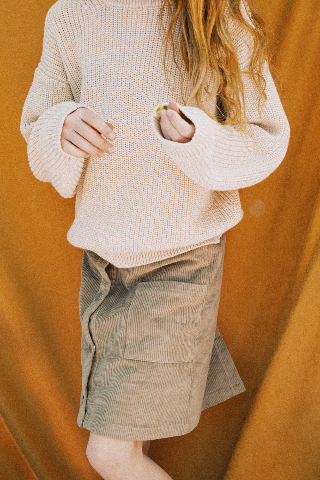 This corduroy skirt will be your little one’s best ally in winter. With a slightly flared cut, an elastic waistband for extra comfort, and nickel-free snap buttons that are easy to open and close—encouraging independence. Designed to last, it’s warm, soft, and resistant thanks to its GOTS-certified organic cotton corduroy fabric. All our garments are toxin-free and hypoallergenic, carefully crafted to protect and respect your little one's delicate skin. This grass green shade evokes serenity and peace, while also conveying stability and a deep connection to the natural world.