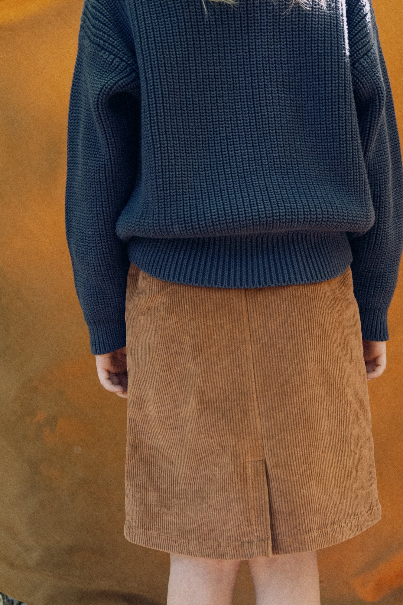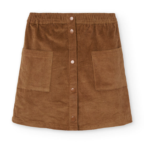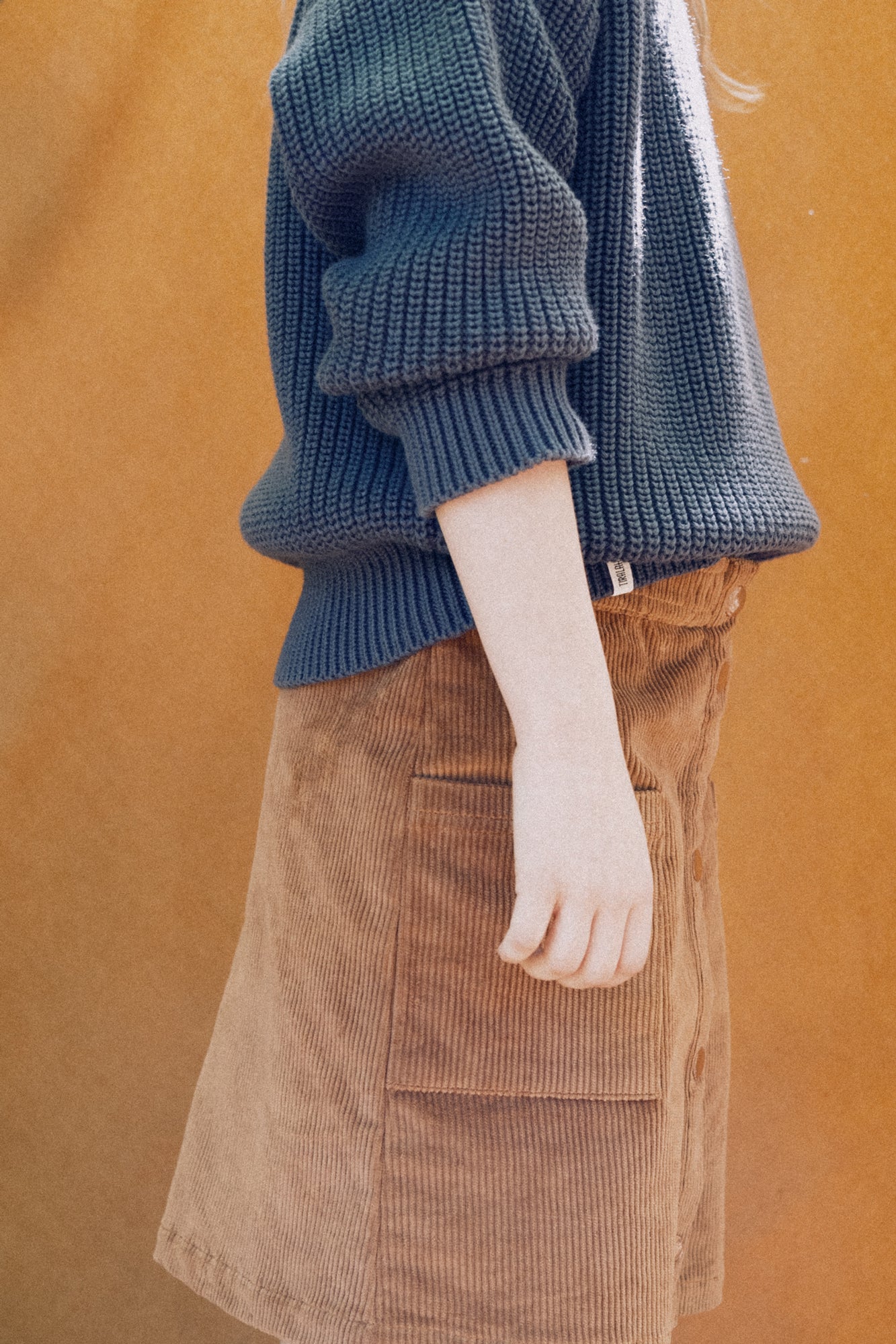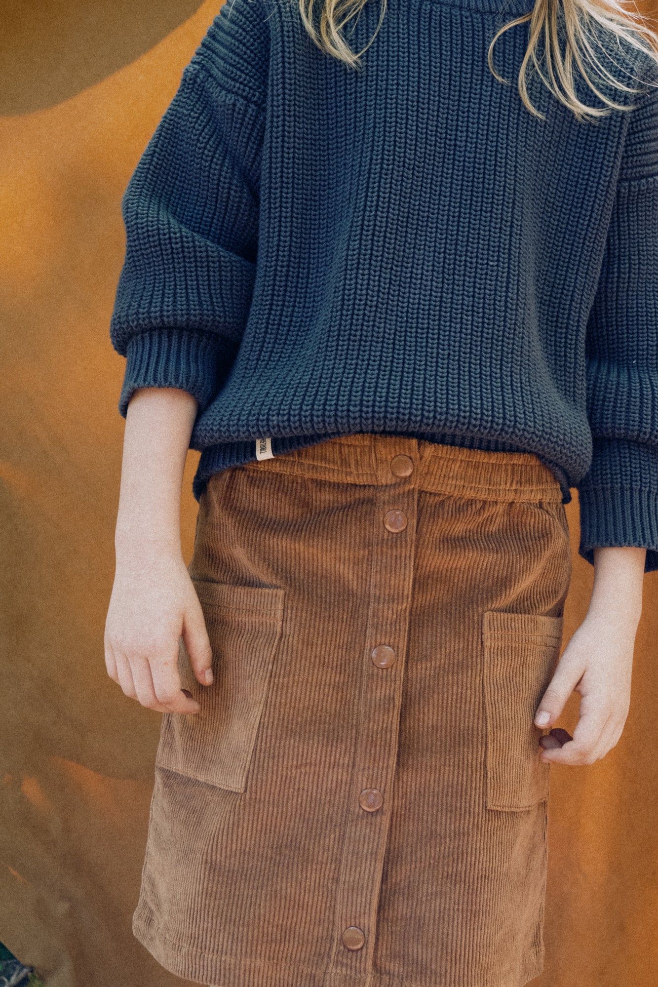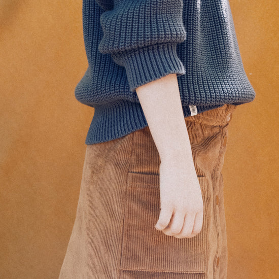 This corduroy skirt will be your little one’s best ally in winter. With a slightly flared cut, an elastic waistband for extra comfort, and nickel-free snap buttons that are easy to open and close—encouraging independence. Designed to last, it’s warm, soft, and resistant thanks to its GOTS-certified organic cotton corduroy fabric. All our garments are toxin-free and hypoallergenic, carefully crafted to protect and respect your little one's delicate skin. This terracotta shade conveys warmth, strength, and an earthy connection. A timeless and versatile color that adds depth and natural elegance to any outfit.