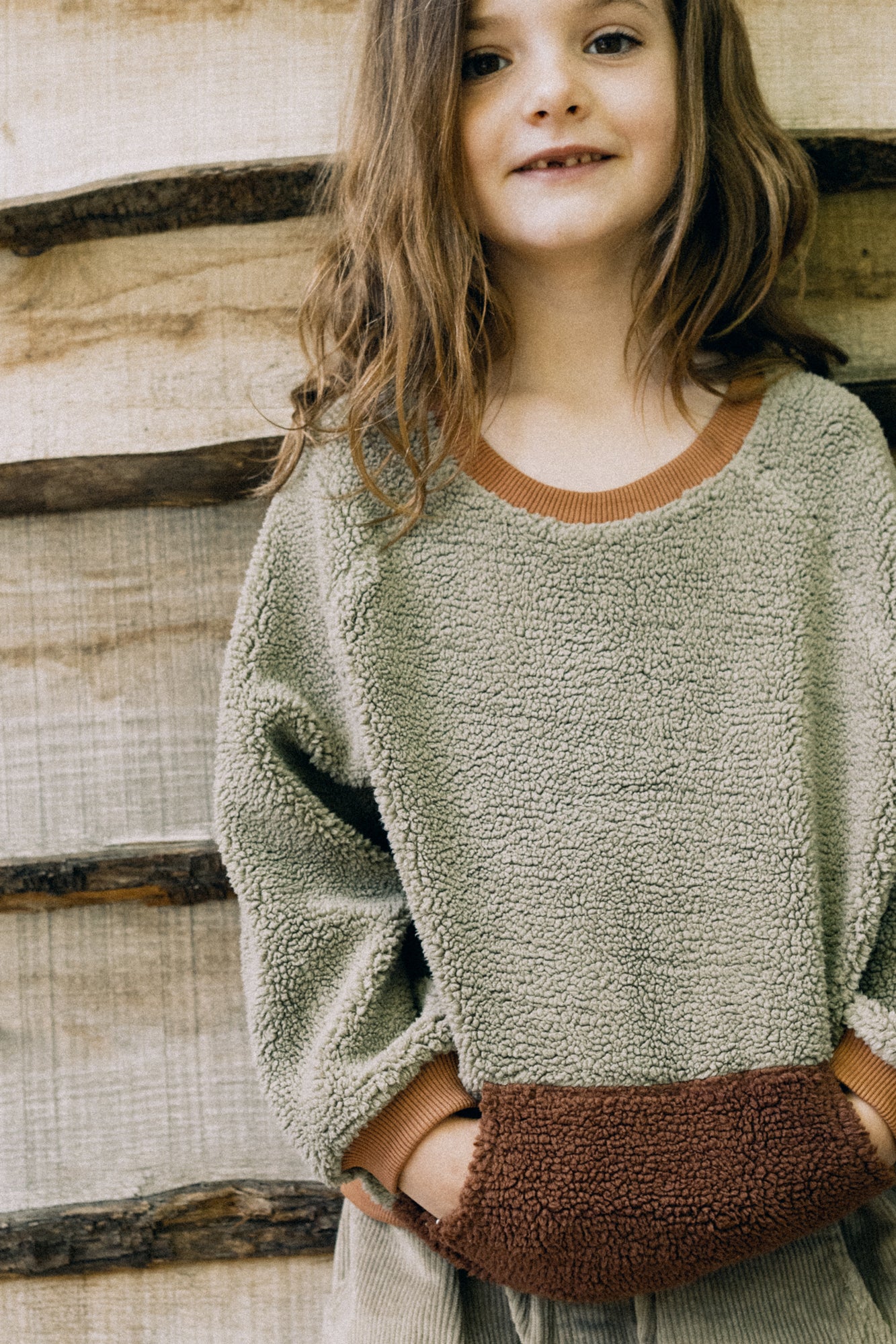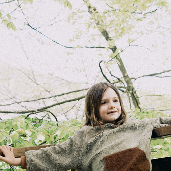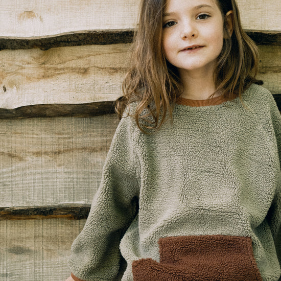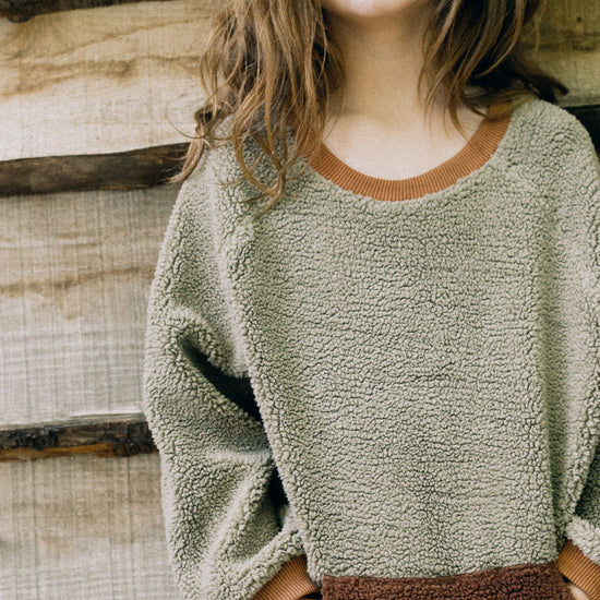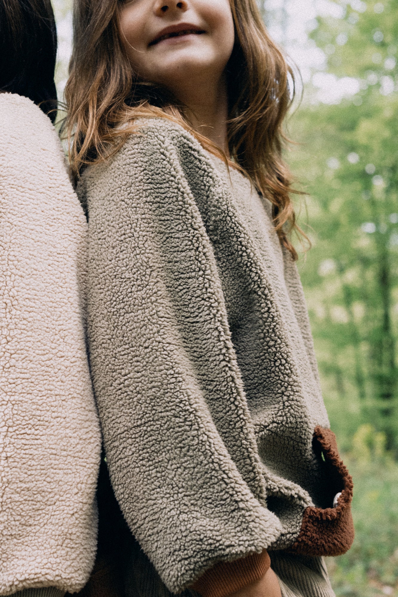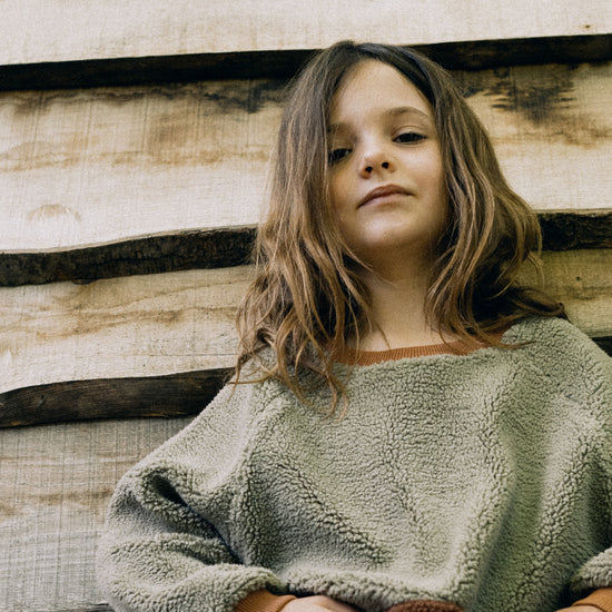 This Sherpa Sweatshirt is the perfect piece for winter—warm, cozy, and designed with care for your little one’s comfort. With a relaxed fit, dropped shoulders, and soft ribbing at the cuffs and hem, it’s made to support free movement and growth. Crafted from 100% GOTS-certified organic cotton sherpa, the fabric is thick yet lightweight, offering warmth without weighing them down. All our garments are toxin-free and hypoallergenic, carefully crafted to protect and respect your little one's delicate skin. This grass green shade evokes serenity and peace, while also conveying stability and a deep connection to the natural world.