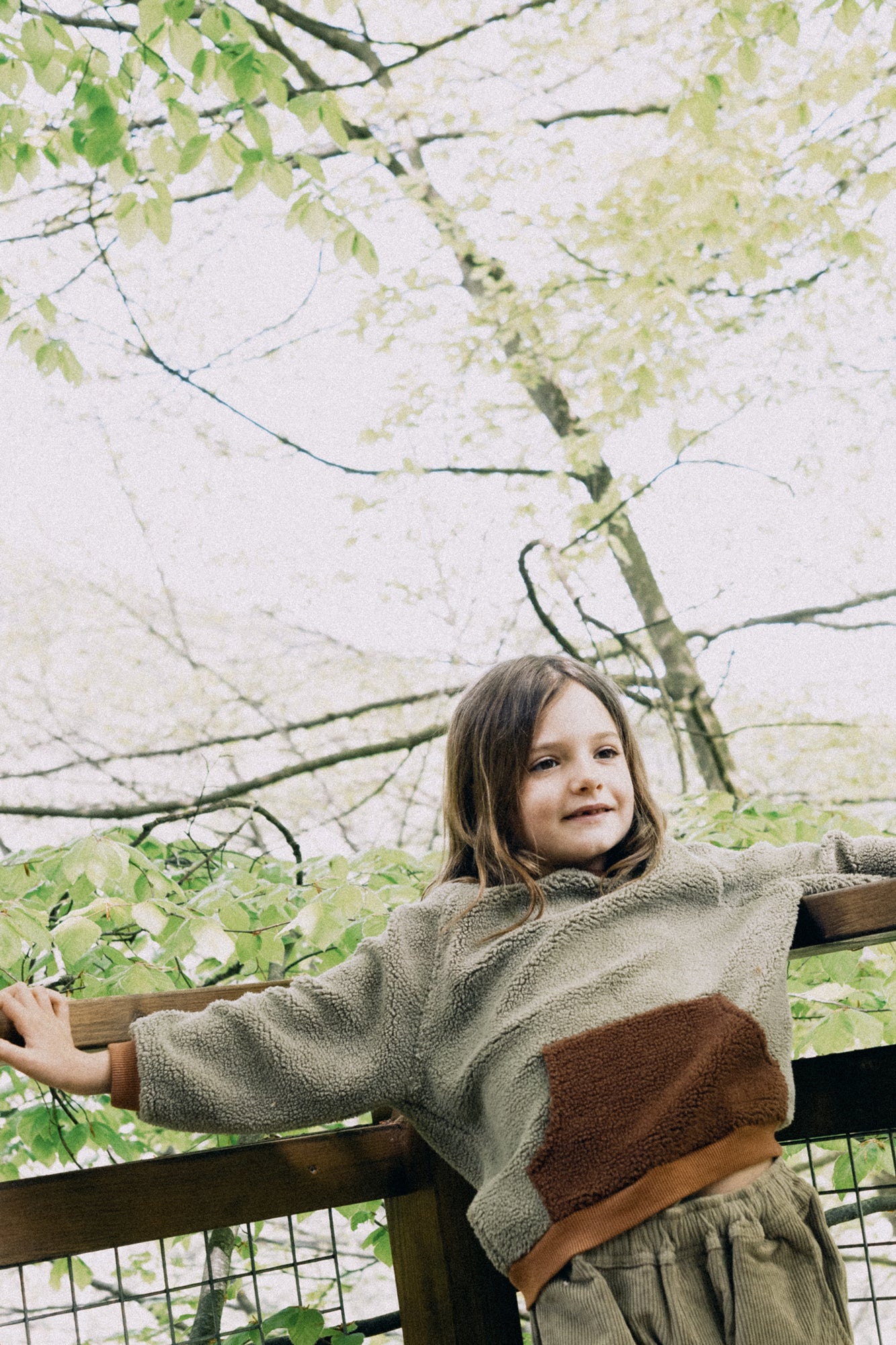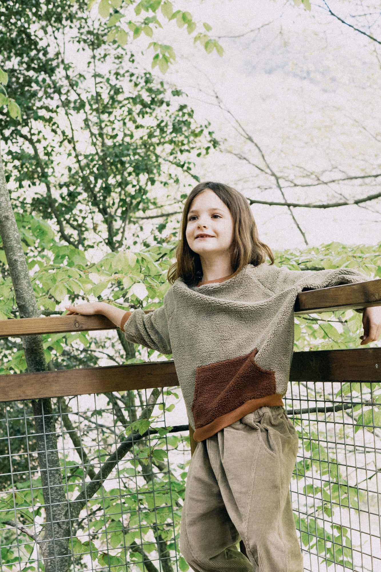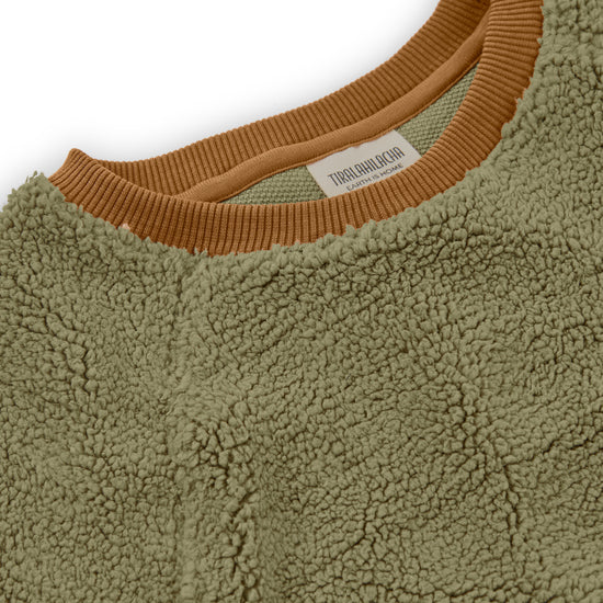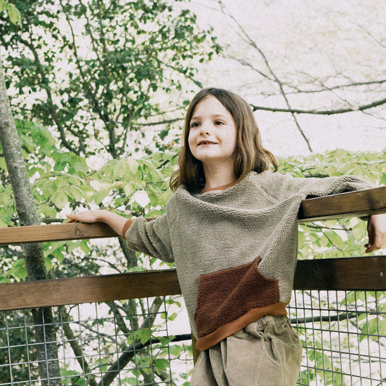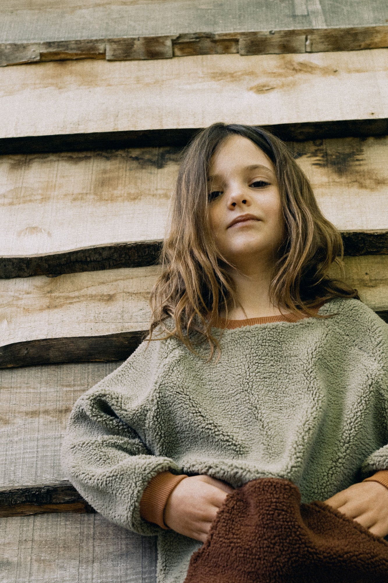 This Sherpa Sweatshirt is the perfect piece for winter—warm, cozy, and designed with care for your little one’s comfort. With a relaxed fit, dropped shoulders, and soft ribbing at the cuffs and hem, it’s made to support free movement and growth. Crafted from 100% GOTS-certified organic cotton sherpa, the fabric is thick yet lightweight, offering warmth without weighing them down. All our garments are toxin-free and hypoallergenic, carefully crafted to protect and respect your little one's delicate skin. This grass green shade evokes serenity and peace, while also conveying stability and a deep connection to the natural world.