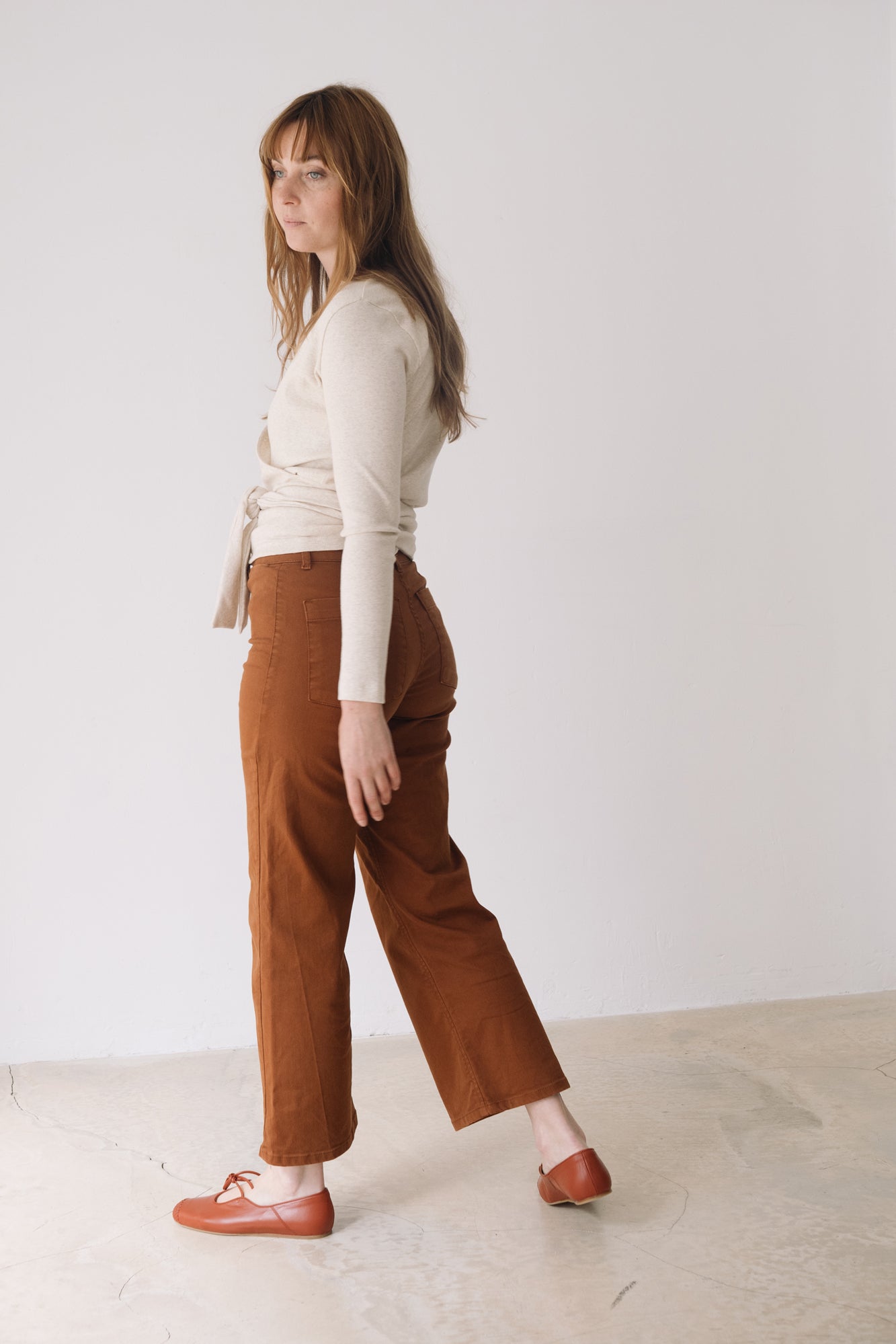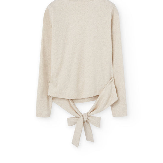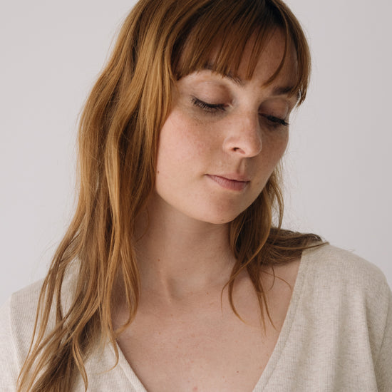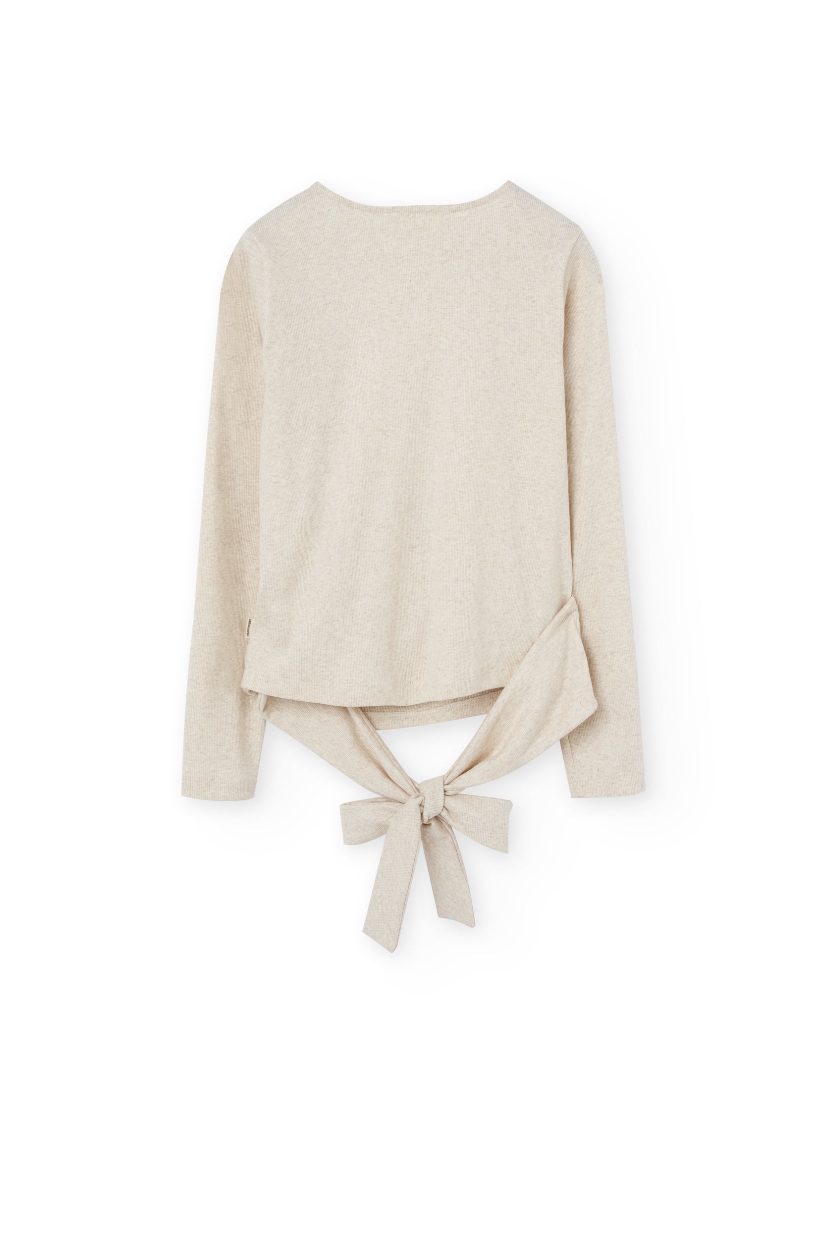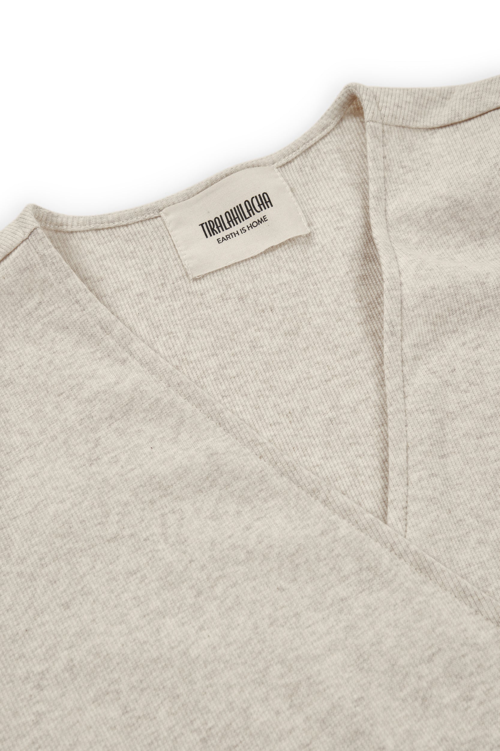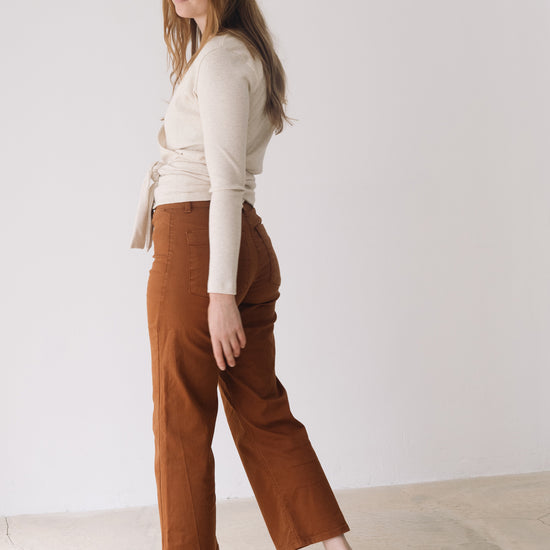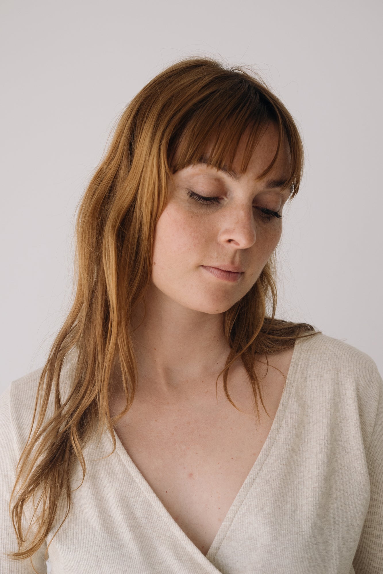 This Wrap Top in brown is a comfortable, feminine, and versatile piece designed to accompany you in your everyday life with style. A must-have essential for your sustainable wardrobe! Crafted from GOTS-certified organic cotton jersey, it features a soft, thick, and stretchy texture that adapts to your body without feeling tight. Its wrap design, with a V-neckline and tie at the waist, allows you to adjust the fit to your liking, naturally enhancing your silhouette. This neutral ecru shade evokes calm, warmth, and balance. Versatile and luminous, it pairs effortlessly with any outfit, adding serenity and timeless sophistication.