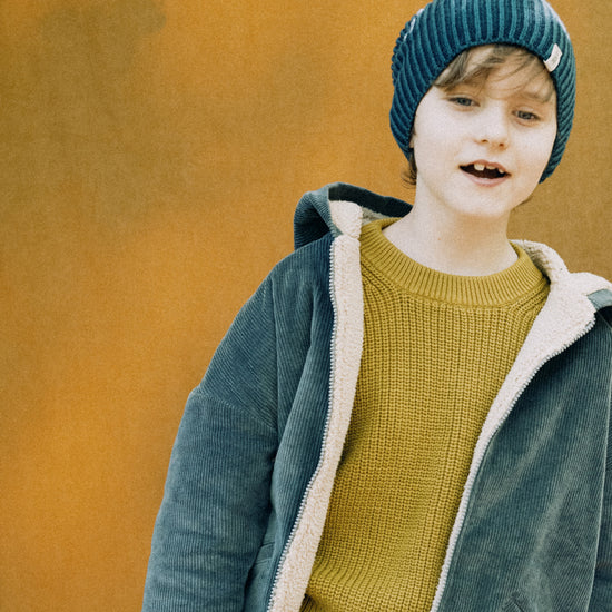 Esta chaqueta de pana y borreguito con capucha y bolsillos será la gran aliada para los días más fríos. Es una prenda gruesa e increíblemente calentita y supersuave al tacto. Pensada para arroparles todo el invierno respetando su libre movimiento con nuestros tejidos de pana y borreguito, ¡supercalidos y flexibles!. Confeccionada en algodón orgánico GOTS. Todas nuestras prendas están confeccionadas libres de tóxicos y son hipoalergénicas respetando la suave y delicada piel de tu peque. El azul transmite serenidad y una elegancia discreta, es un tono muy favorecedor.