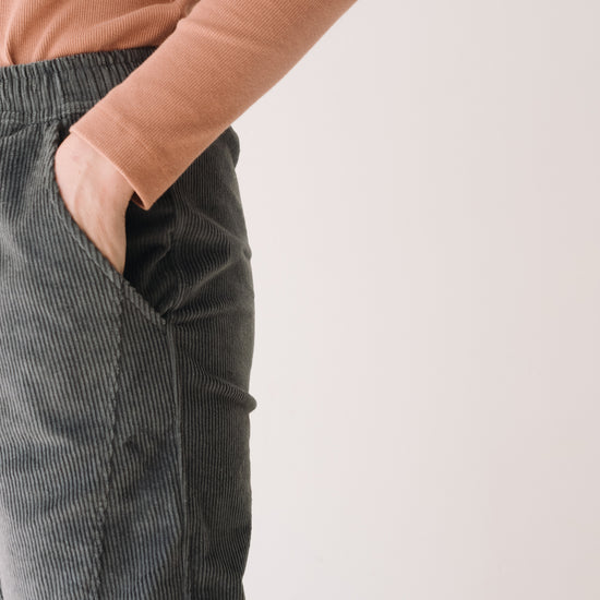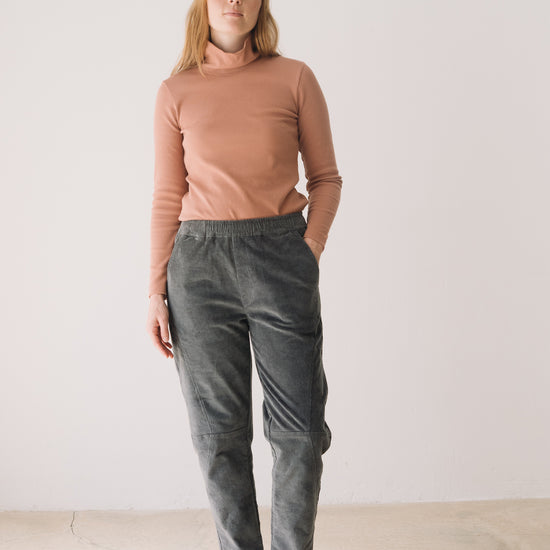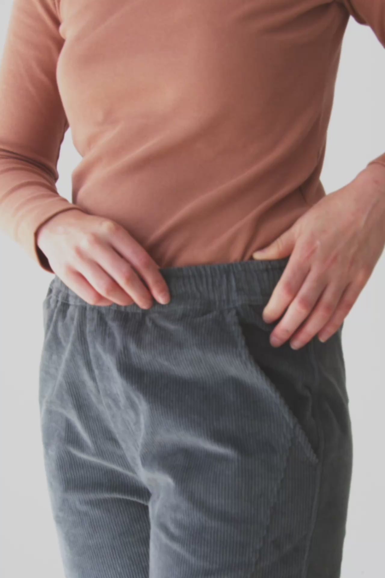 El modelo es un pantalón versátil y con carácter. ¡Es nuestro pantalón todoterreno! Diseñado para acompañarte en tu día a día en la ciudad o en la montaña por su comodidad, flexibilidad y tejido súpersuave que no te dejará indiferente. Tiene cintura elástica para mayor ajuste, bolsillos laterales y costuras delanteras que aportan estructura sin perder flexibilidad. Está confeccionado en pana gruesa de algodón orgánico certificado GOTS, un tejido cálido y resistente, ideal para los meses fríos. El azul transmite serenidad y una elegancia discreta, un tono muy favorecedor para todo tipo de pieles, especialmente las más claras.