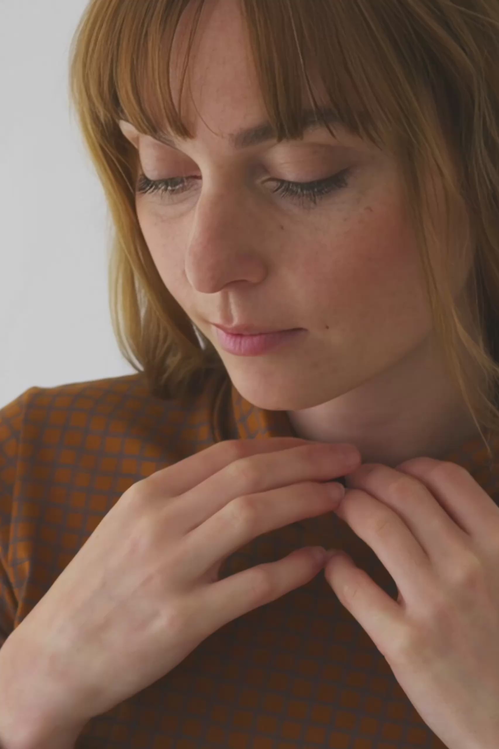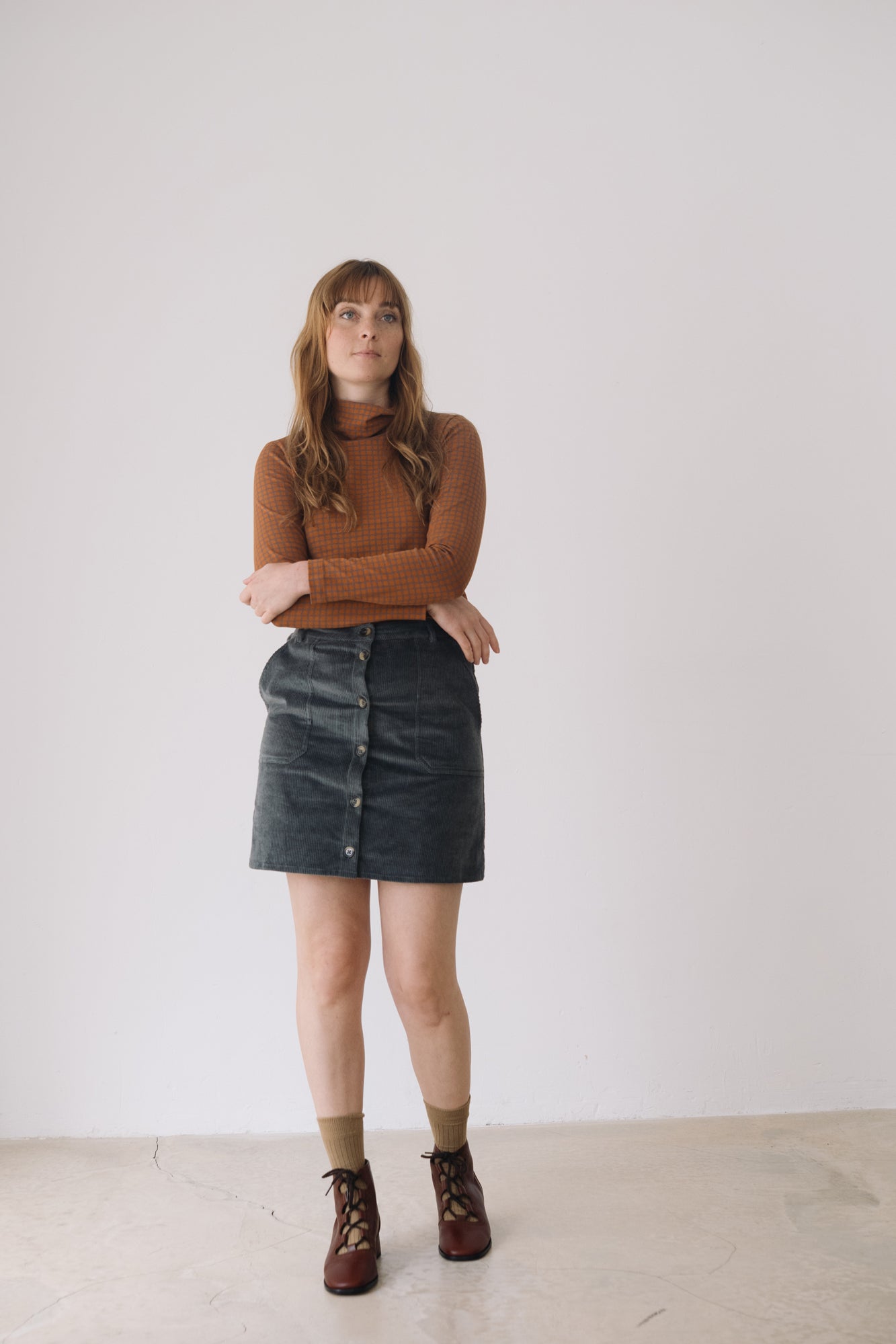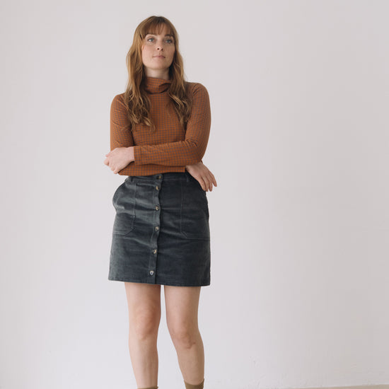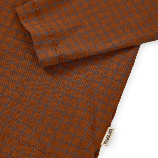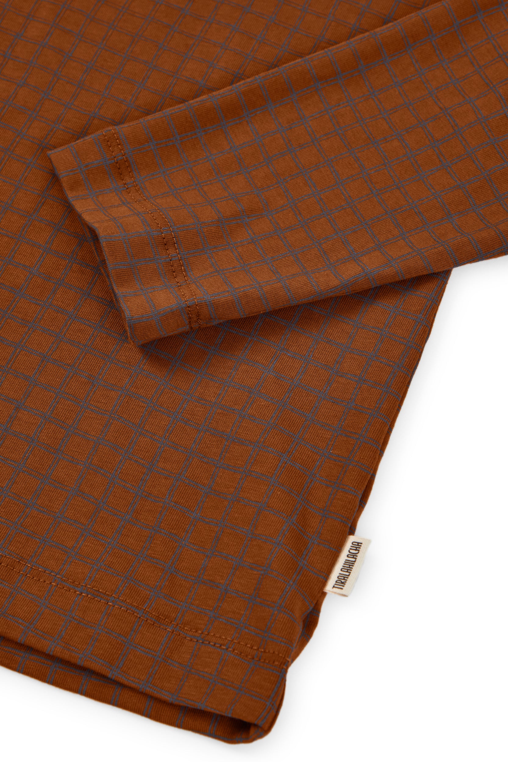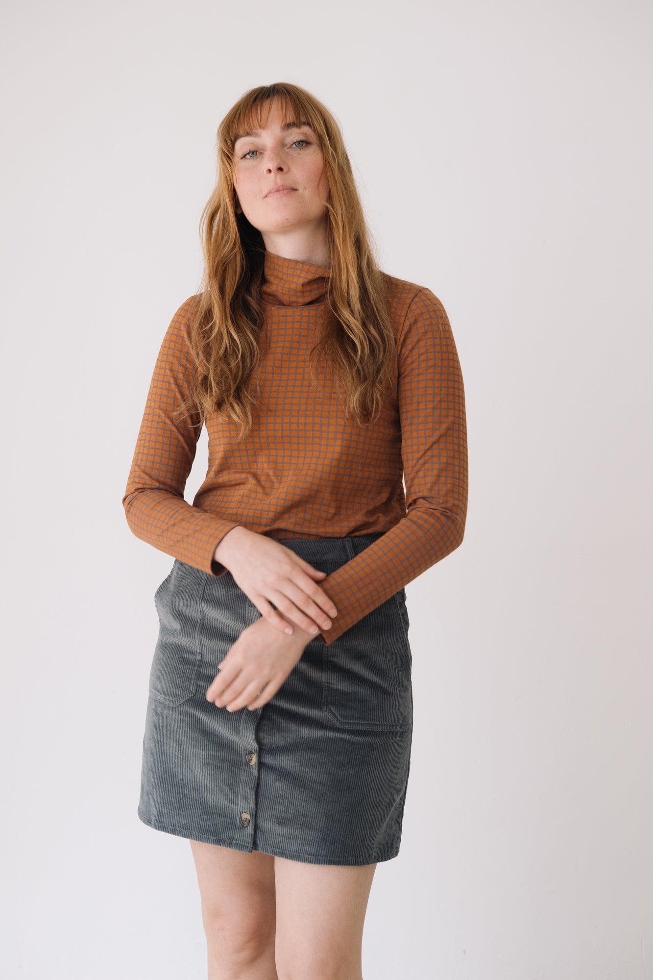 El modelo Taavi de cuello alto es una prenda cálida y suave, ideal para acompañarte durante los meses fríos. Está confeccionada en punto de jersey de algodón orgánico certificado GOTS, ccon estampado de cuadros deshiguales. Su cuello alto amplio se adapta cómodamente sin oprimir, y su corte recto favorece todo tipo de siluetas. Su estampado de cuadros en tonos teja y gris transmite calidez, creatividad y equilibrio. Una combinación original y armónica que aporta carácter a cualquier look.