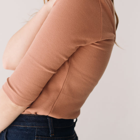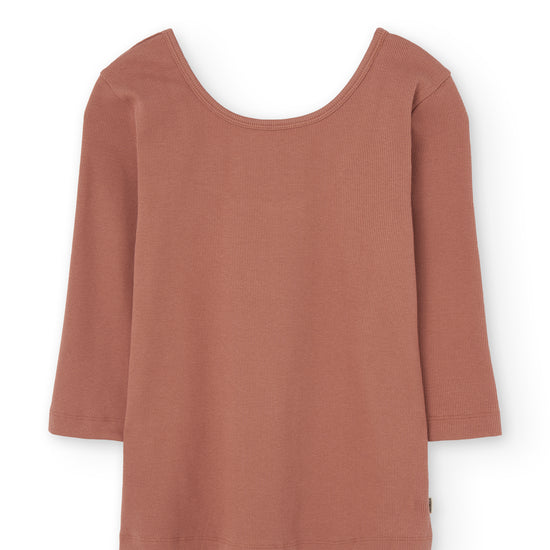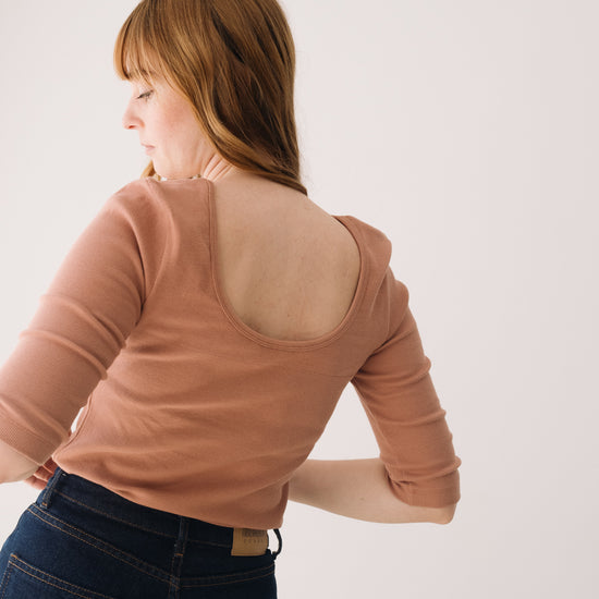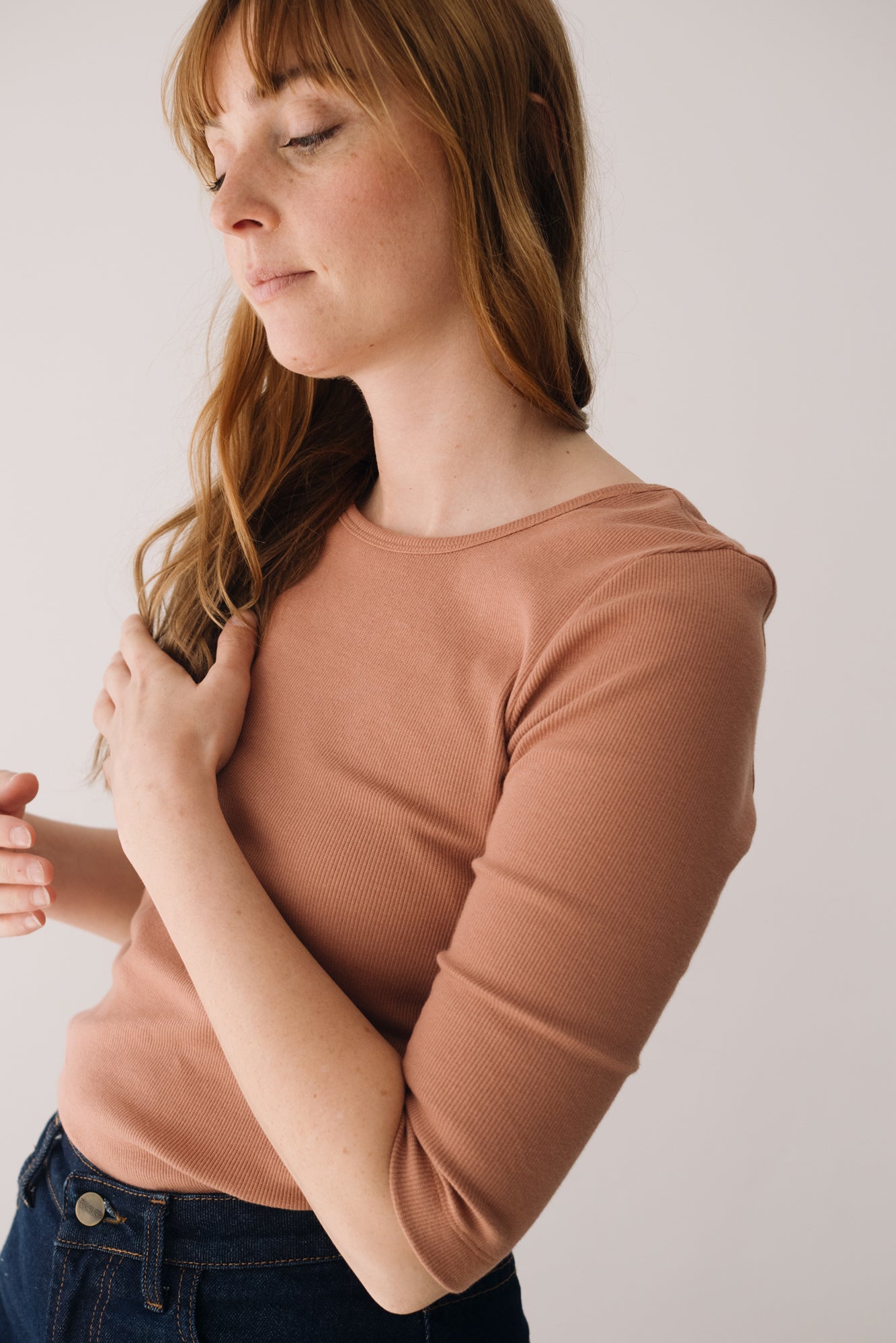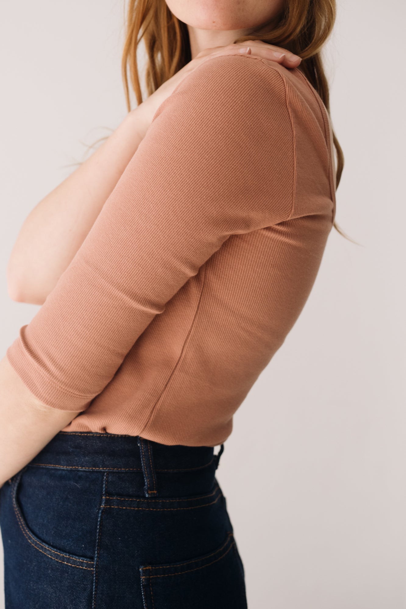 El modelo Tylor de manga tres cuartos y escote barco, es una de esas prendas que se convierten en imprescindibles en tu armario. Su diseño versátil y femenino, permite llevar el escote más pronunciado tanto por delante como por detrás, adaptándose a tu estilo. Confeccionado en canalé de algodón orgánico certificado GOTS, tiene una textura suave, cálida y elástica que se adapta a tu cuerpo sin apretar. El rosa empolvado transmite dulzura, calma y delicadeza. Es un color suave y atemporal que aporta un toque romántico y sereno a cualquier look.