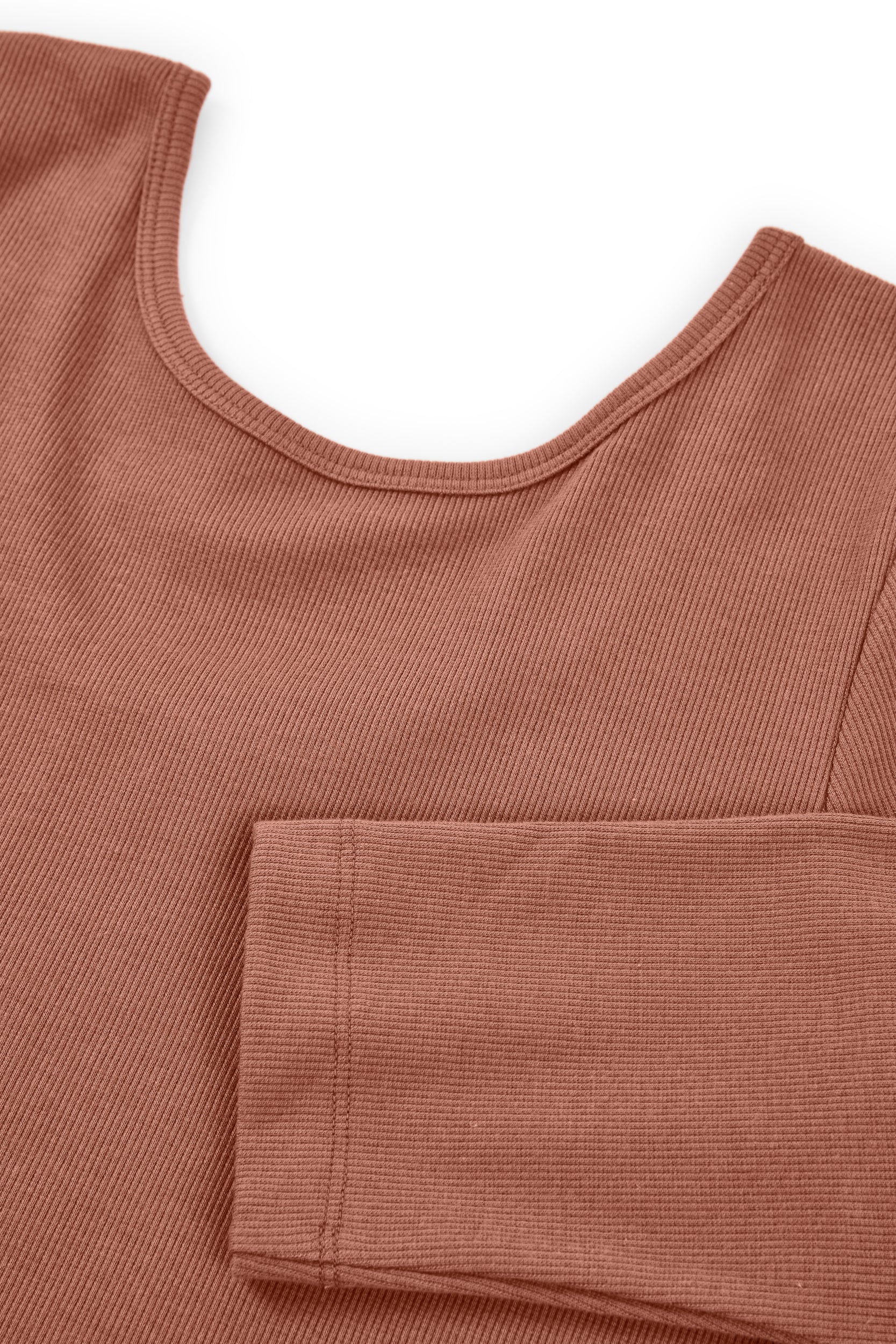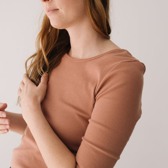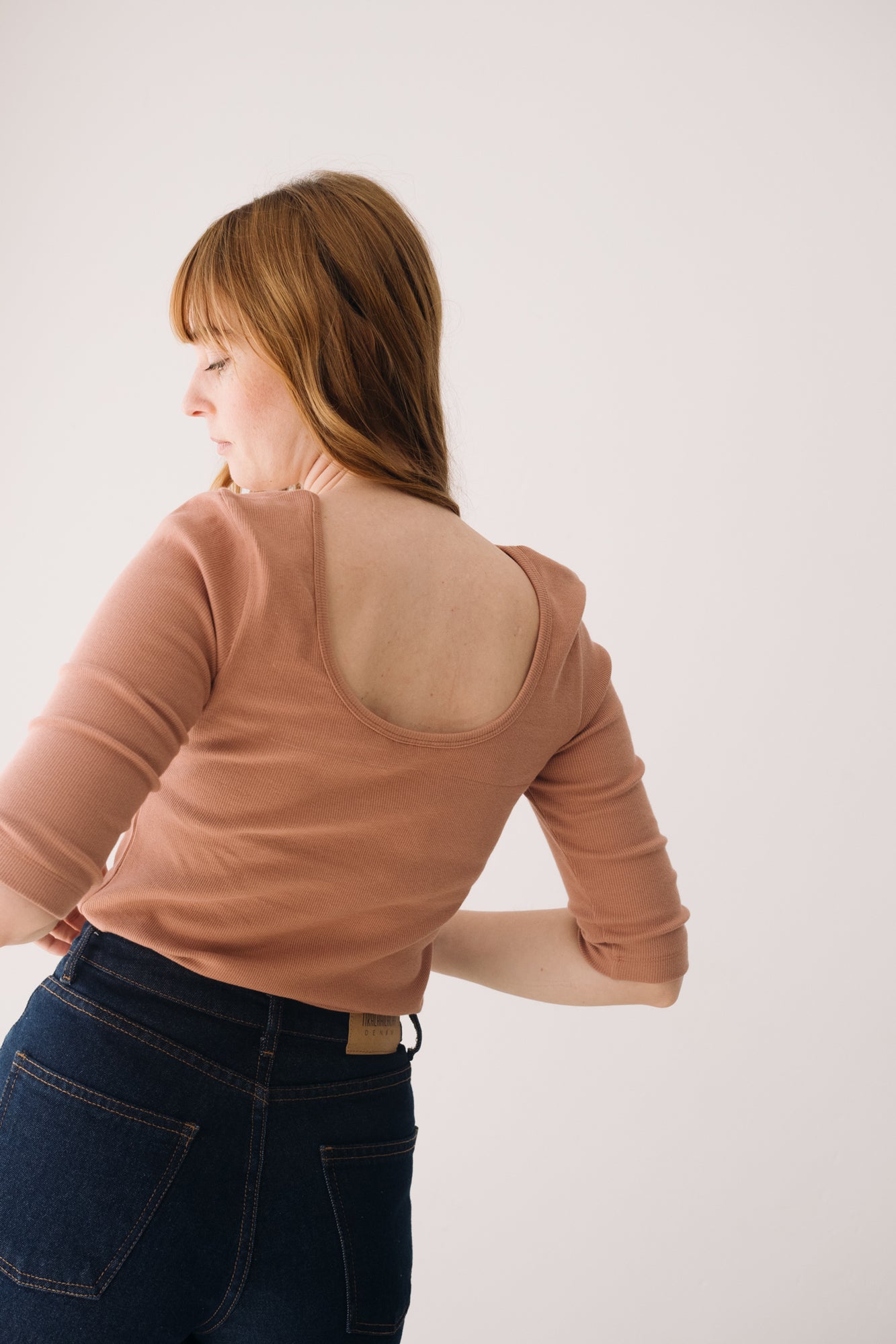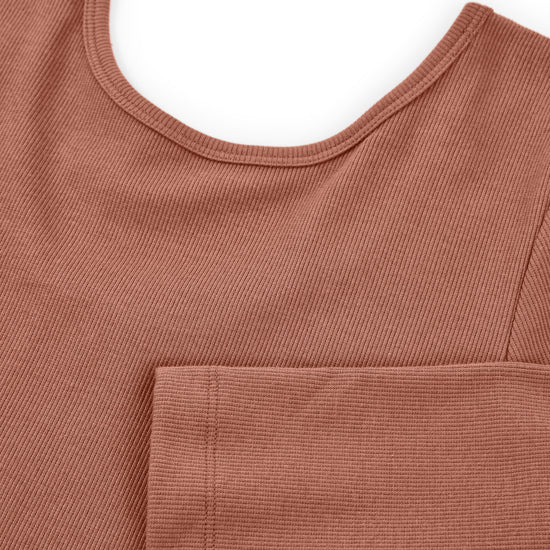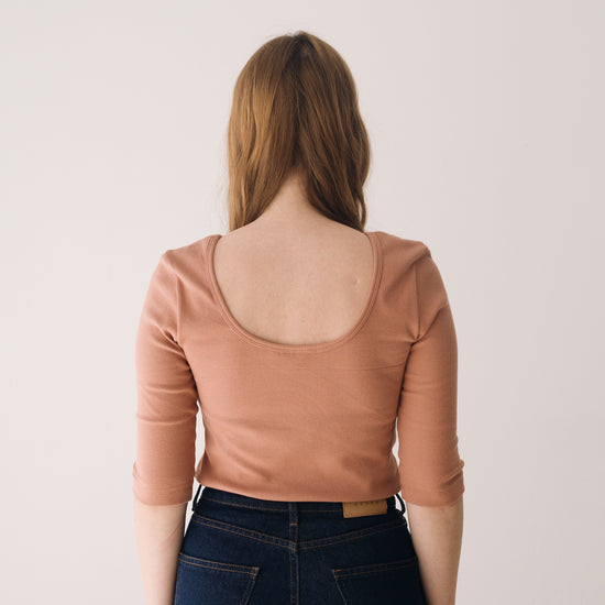 El modelo Tylor de manga tres cuartos y escote barco, es una de esas prendas que se convierten en imprescindibles en tu armario. Su diseño versátil y femenino, permite llevar el escote más pronunciado tanto por delante como por detrás, adaptándose a tu estilo. Confeccionado en canalé de algodón orgánico certificado GOTS, tiene una textura suave, cálida y elástica que se adapta a tu cuerpo sin apretar. El rosa empolvado transmite dulzura, calma y delicadeza. Es un color suave y atemporal que aporta un toque romántico y sereno a cualquier look.