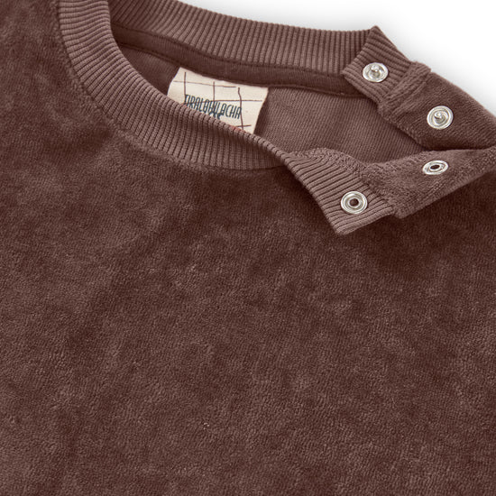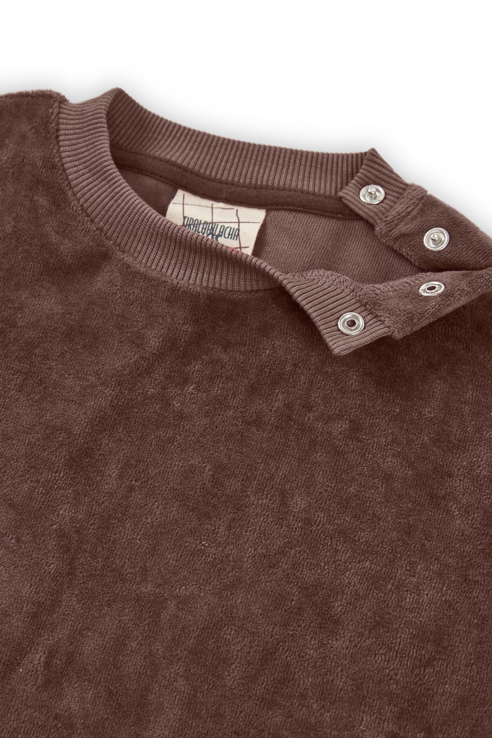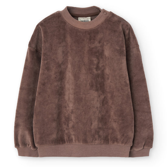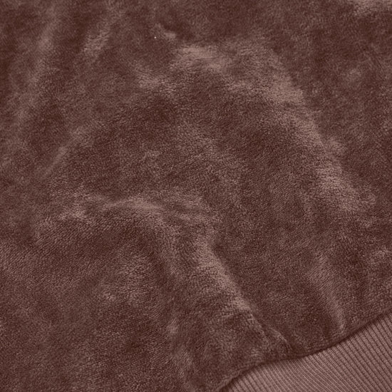 Suave y supercalentita, así es nuestra sudadera de terciopelo de algodón 100% orgánico GOTS. Una prenda versátil que podrás combinar con infinidad de prendas, como por ejemplo, los pantalones Tino a juego. Pensada para su libre movimiento, ligera, con manga caida y anchita. Con canalé suave en la cintura y puños para mayor ajuste. Todas nuestras prendas están confeccionadas libres de tóxicos y son hipoalergénicas respetando la suave y delicada piel de tu bebé. El tono malva aporta calma, delicadeza y una luz especial a los looks de invierno.