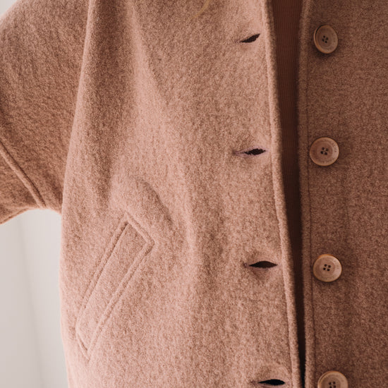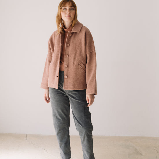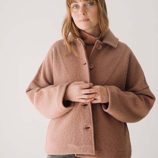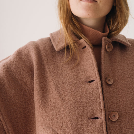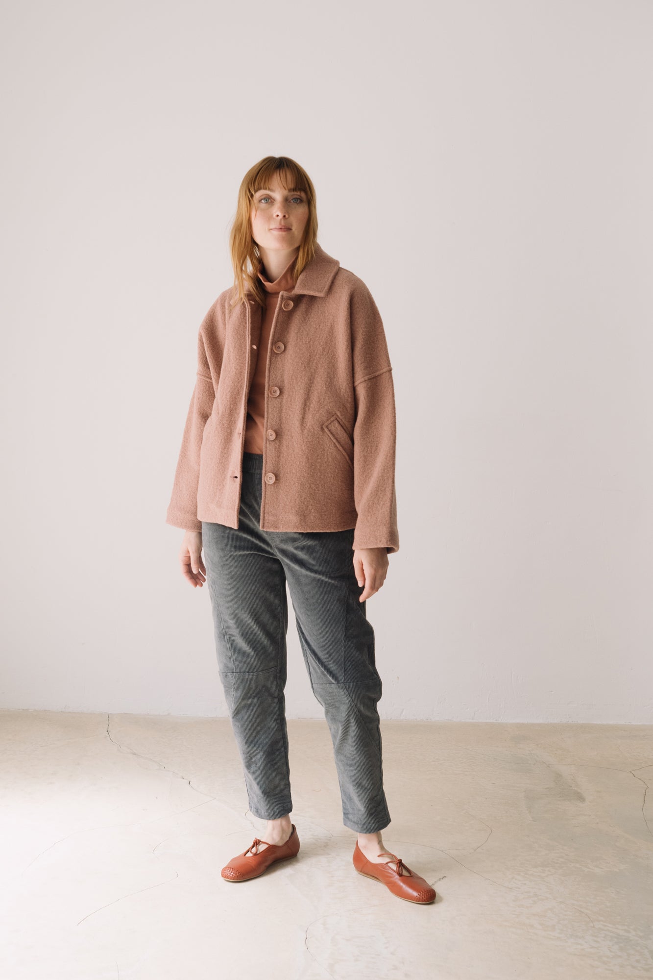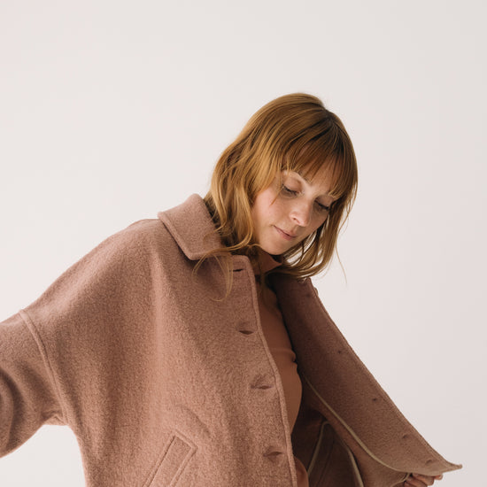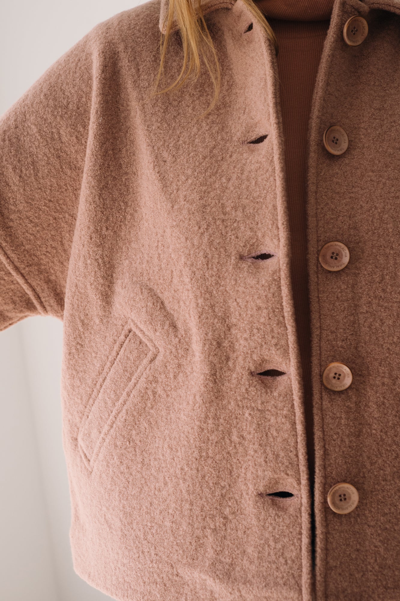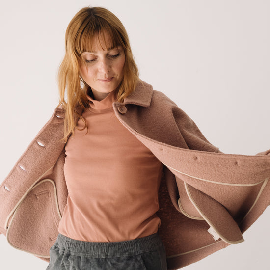 Esta chaqueta es perfecta para quienes buscan abrigo, diseño y sostenibilidad en una sola prenda. Diseñada y pensada para acompañarte por muchos años. Tiene un corte de estilo retro, con cuello camisero, hombro caído y bolsillos diagonales. ¡Se convertirá en un básico imprescindible en tu armario sostenible! Está confeccionada en punto de lana merina de calidad certificada Woolmark y RWS (Responsible Wool Standard), que garantiza el bienestar animal y una producción ética y respetuosa con el medio ambiente. Su tejido tiene cuerpo pero es superligero (no pesa) y calido, ideal para los días fríos. Se abrocha con botones de corozo natural biodegradables. Fabricado con mimo en nuestro taller de Tàrrega (Cataluña). El rosa empolvado transmite dulzura, calma y delicadeza. Es un color suave y atemporal que aporta un toque romántico y sereno a cualquier look.