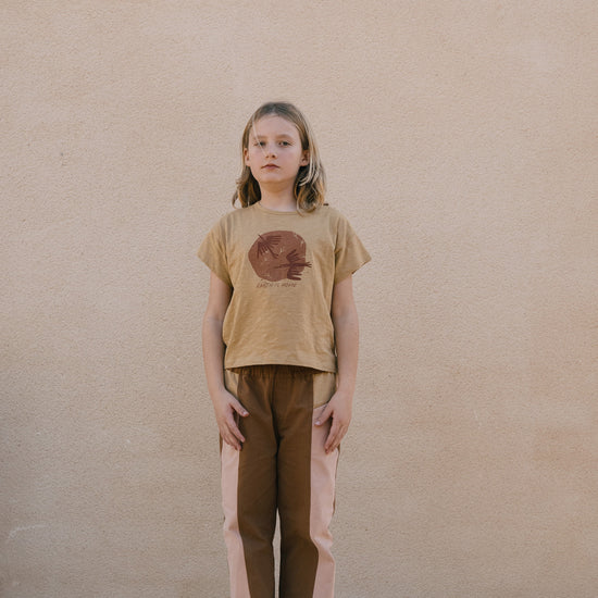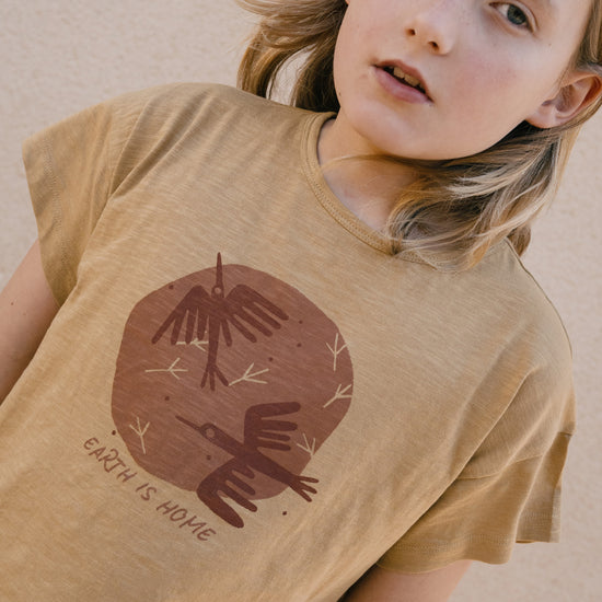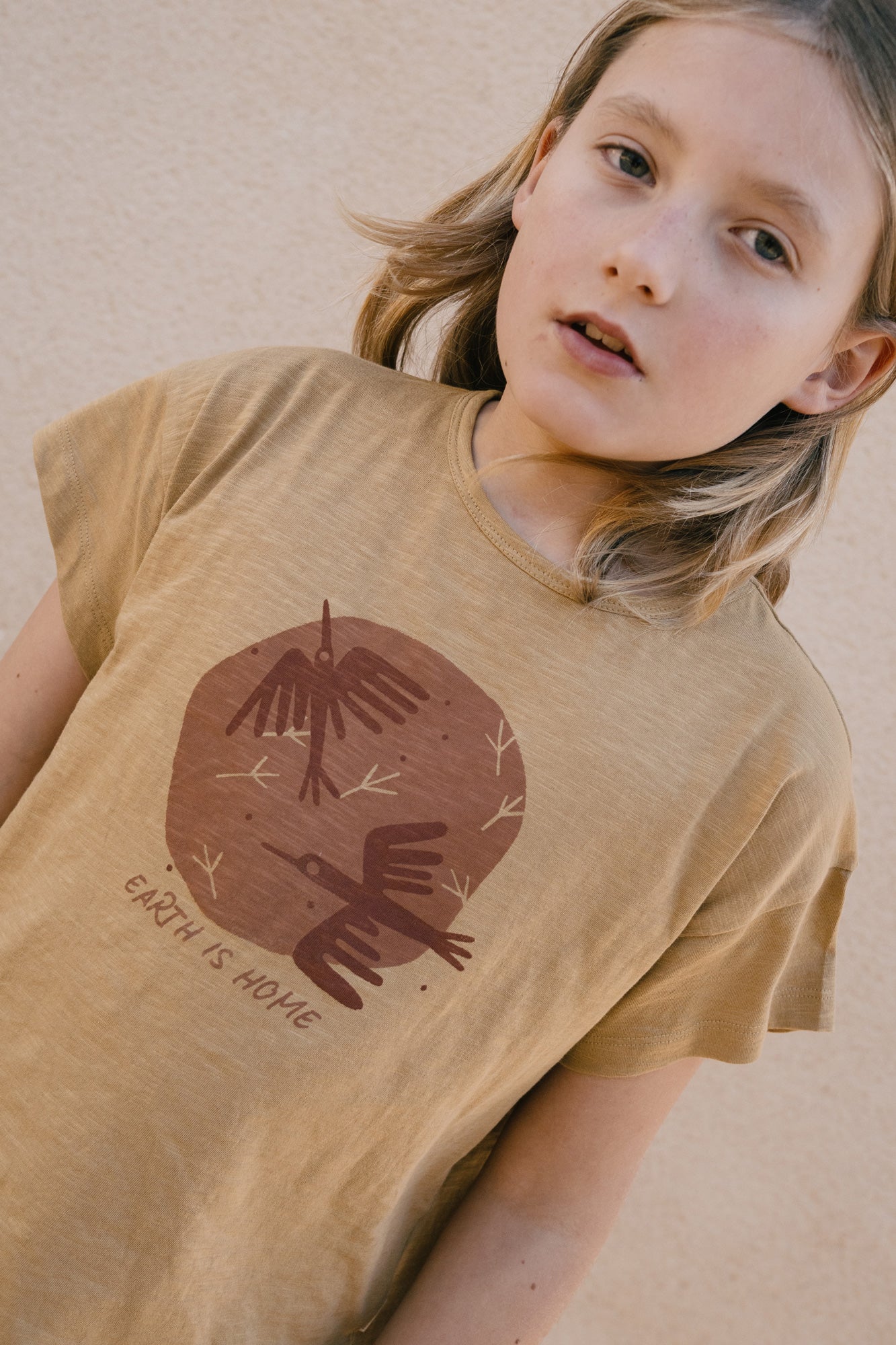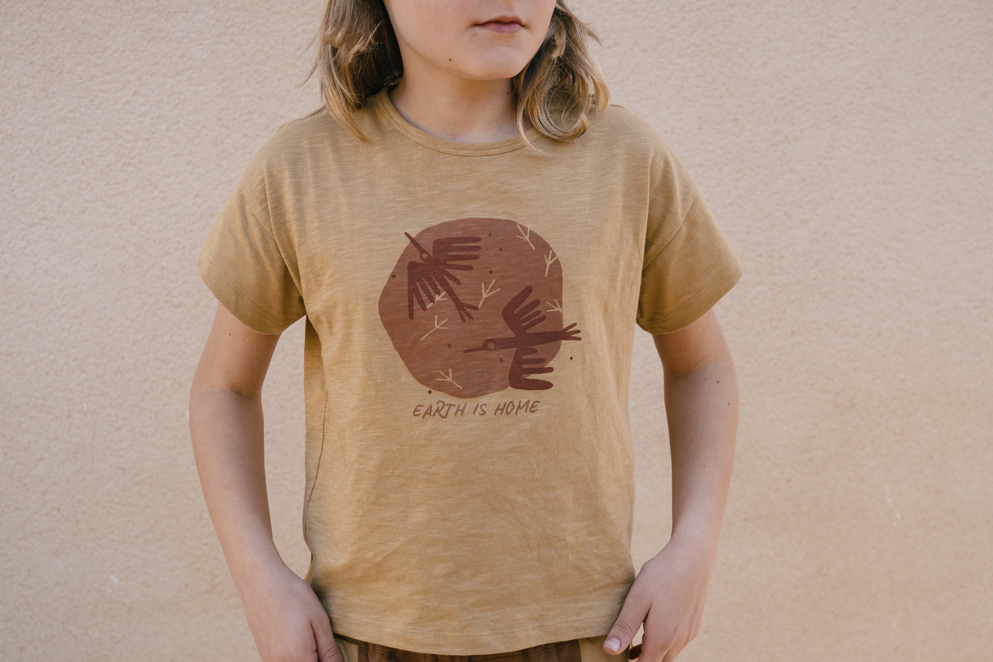 Designed with a relaxed fit that can be worn for longer as your child grows, the Aura short-sleeve T-shirt combines comfort with everyday practicality. Crafted from a breathable organic cotton and modal jersey blend, it feels soft, light and gentle on the skin. Hypoallergenic and free from toxic substances, it’s made to protect and care for sensitive skin. Its print, made up of organic strokes and warm tones by our collaborator, illustrator Laia Roca, evokes nature and sparks the imagination, inviting children to play, observe and dream.