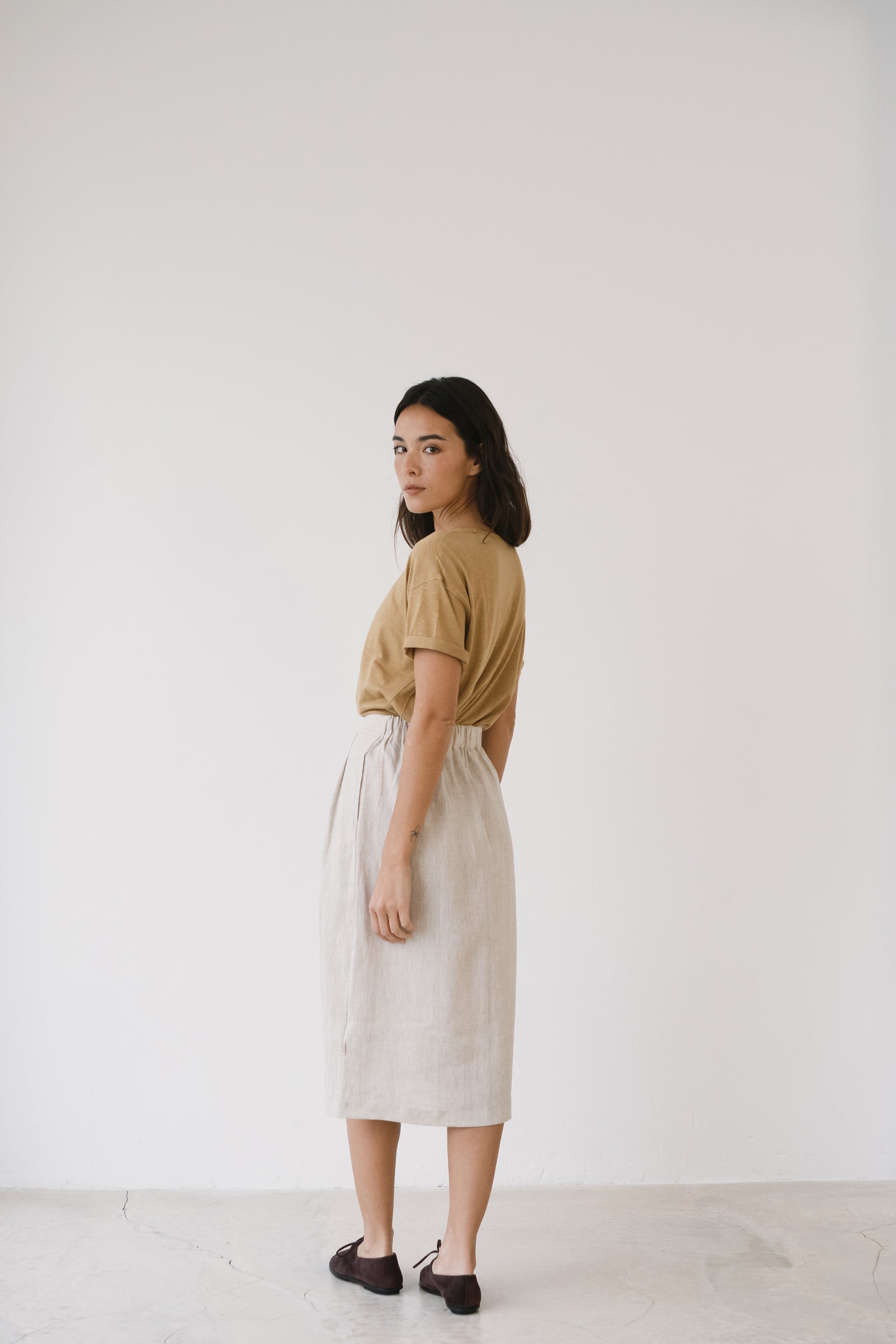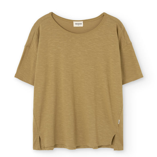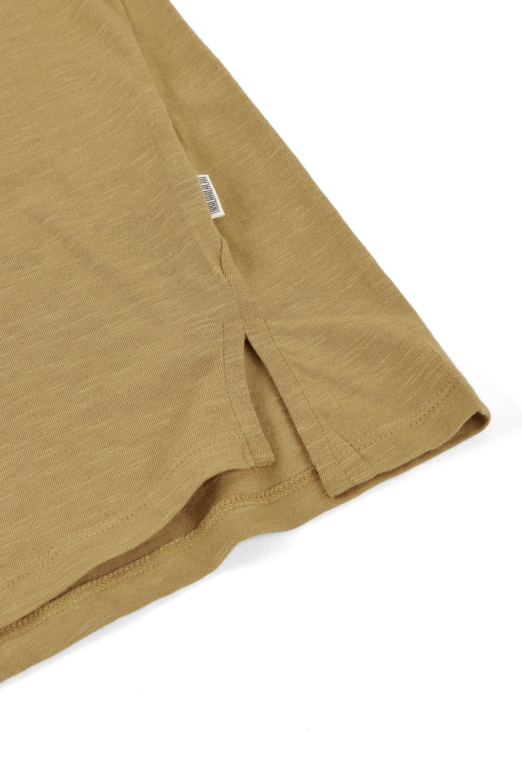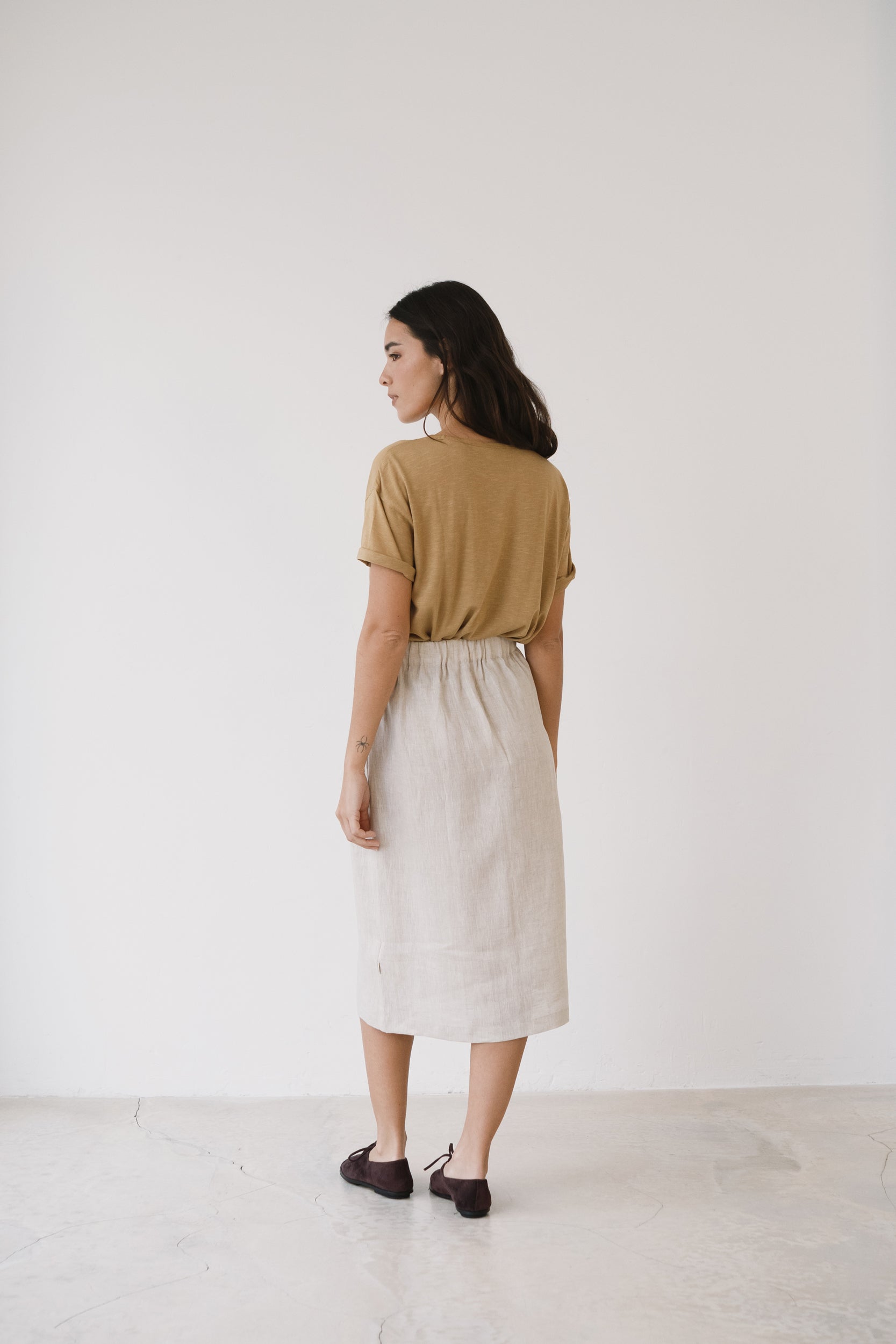 The Amber basic T-shirt is defined by its elegant drape and fluid silhouette, creating a piece that feels both simple and refined. Its premium blend of organic cotton and modal ensures a soft, breathable feel that stays fresh and comfortable all day long. With its clean, timeless design, it pairs naturally with our jeans for everyday ease or with a skirt or linen trousers for a more structured, professional look. This pastel yellow shade conveys warmth and serene joy. A soft, luminous color that adds brightness to your wardrobe in a subtle and timeless way.