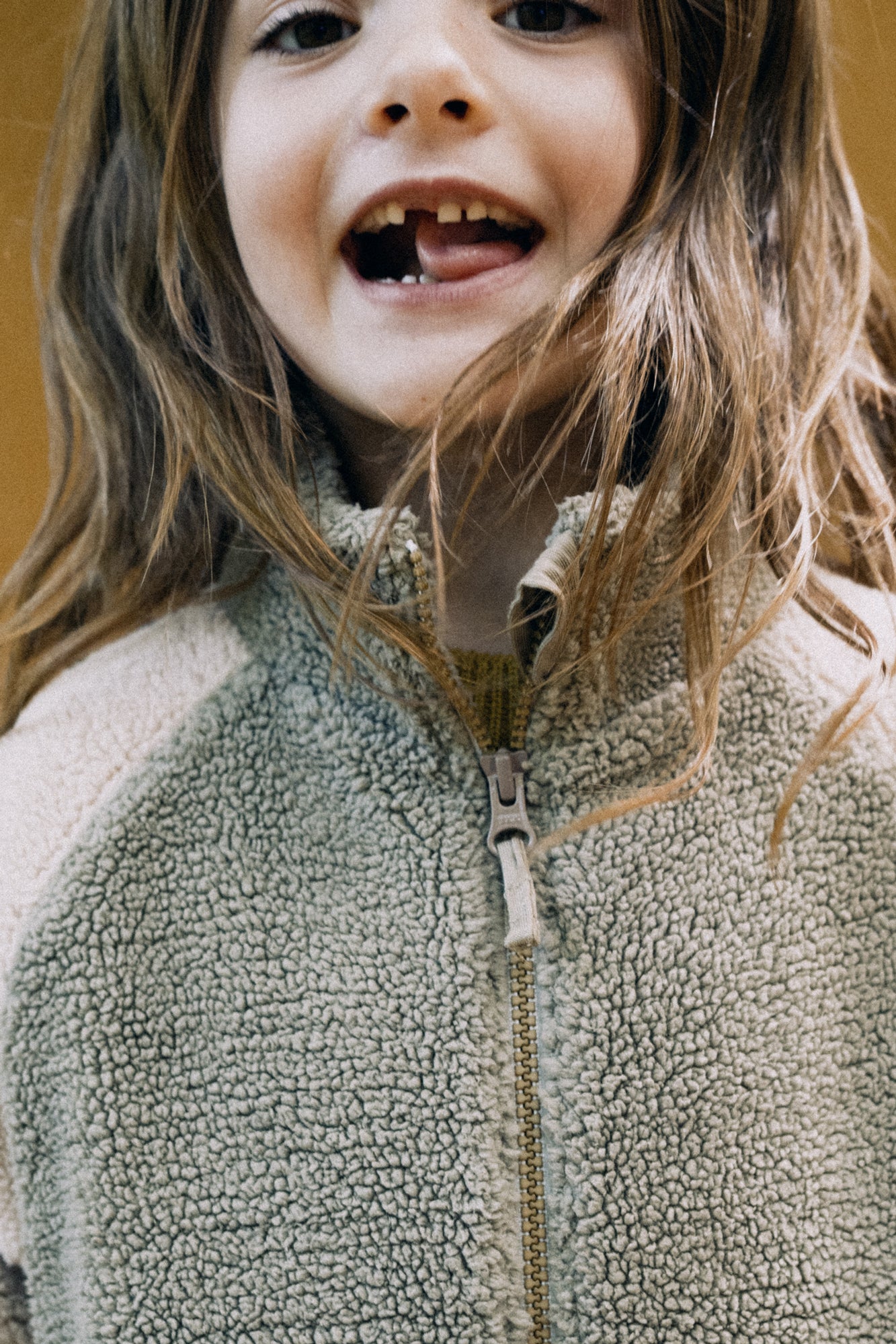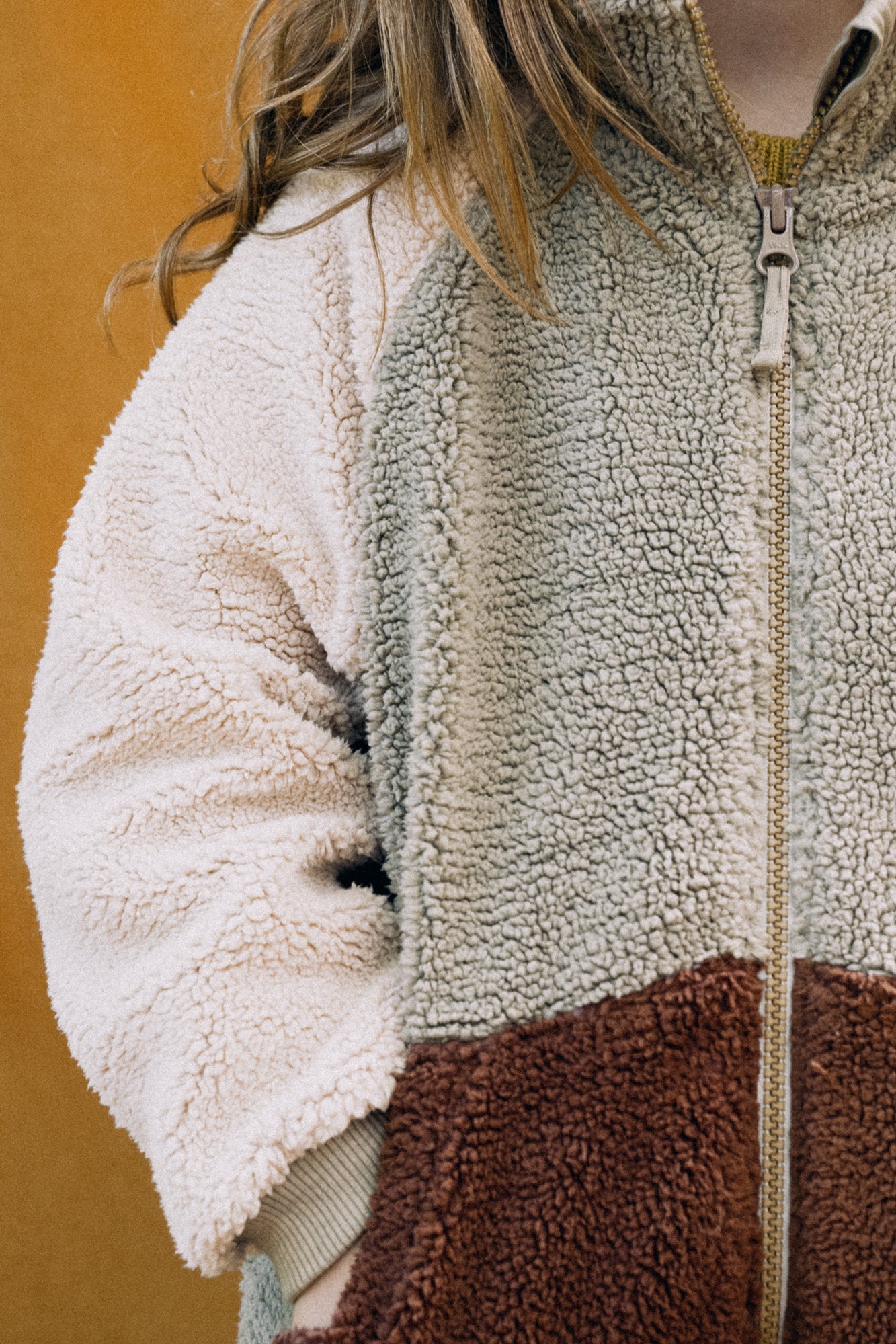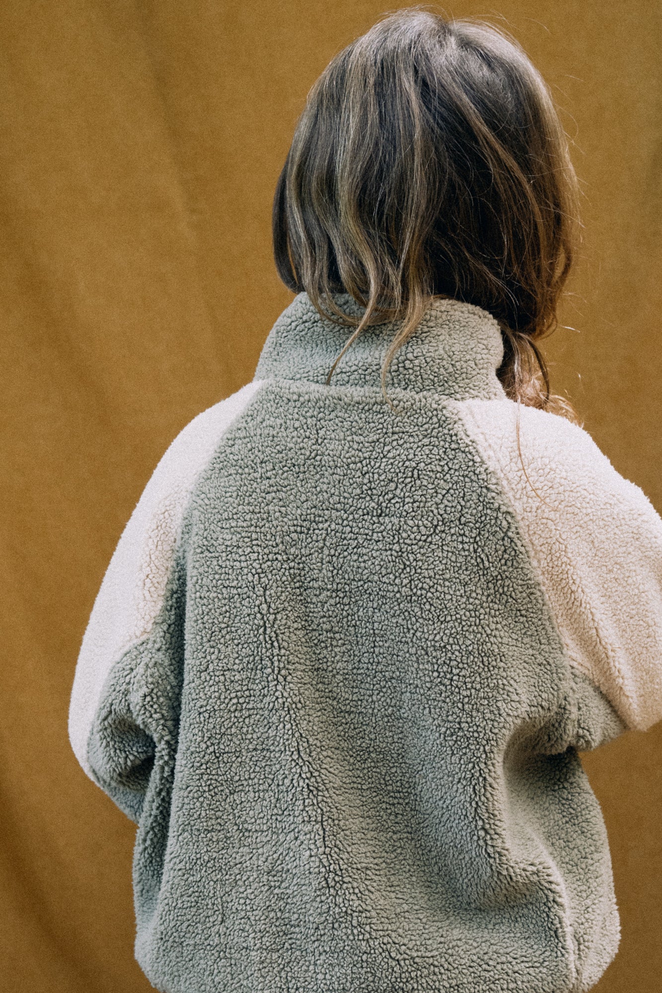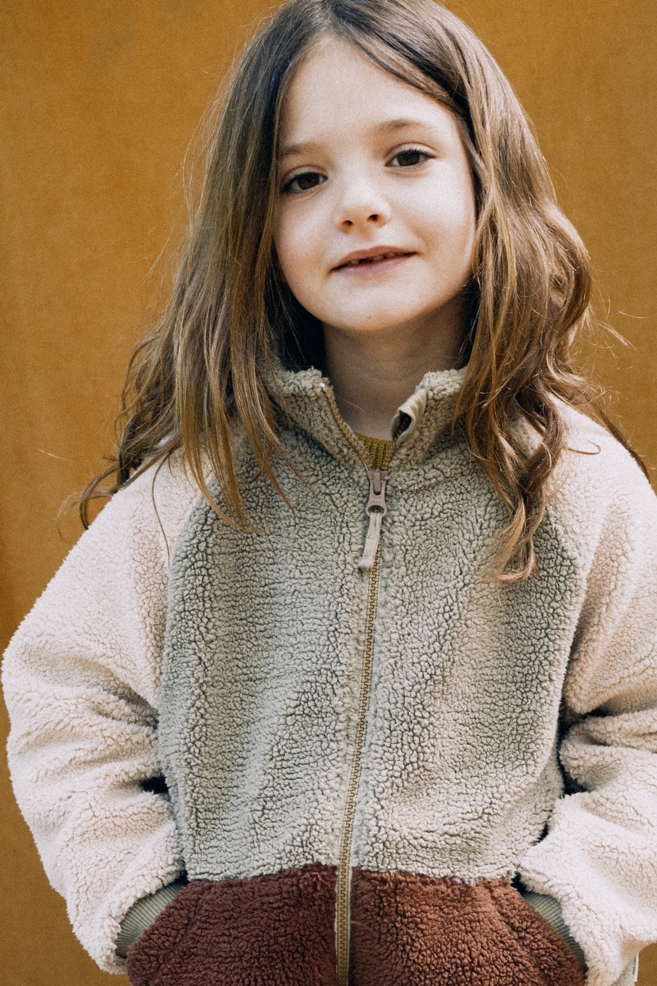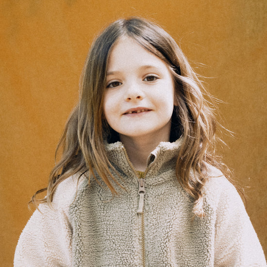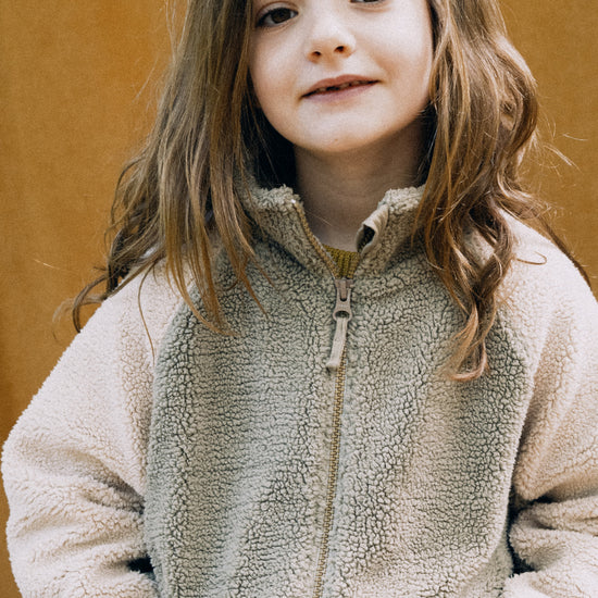 Our very first Sherpa Jacket made from 100% GOTS-certified organic cotton—completely free from synthetic or recycled fibers! Perfect for keeping little ones warm on the coldest days, it features a relaxed fit with raglan sleeves, a high collar, and soft ribbed cuffs and hem. Thick yet lightweight, this warm and cozy jacket is lined with soft jersey inside for extra comfort and ease of movement. All our garments are toxin-free and hypoallergenic, carefully crafted to protect and respect your little one's delicate skin.