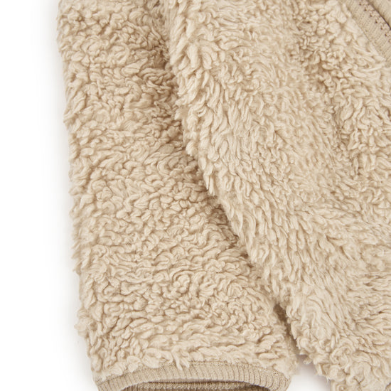 Our very first Baby Jacket in 100% GOTS-certified organic cotton sherpa—soft, warm, and toxin-free. Designed to gently wrap your baby in comfort while protecting their skin and the planet. This neutral ecru shade evokes calm, warmth, and balance. Versatile and luminous, it pairs effortlessly with any outfit.